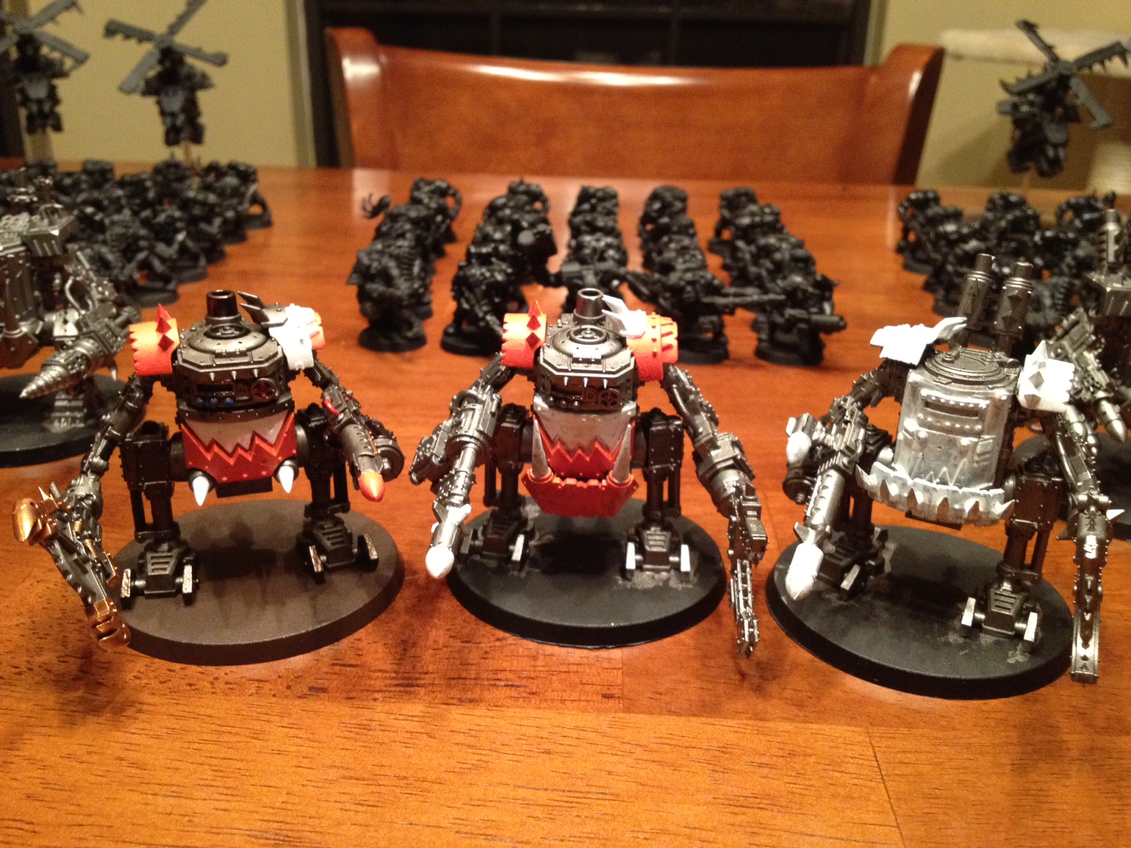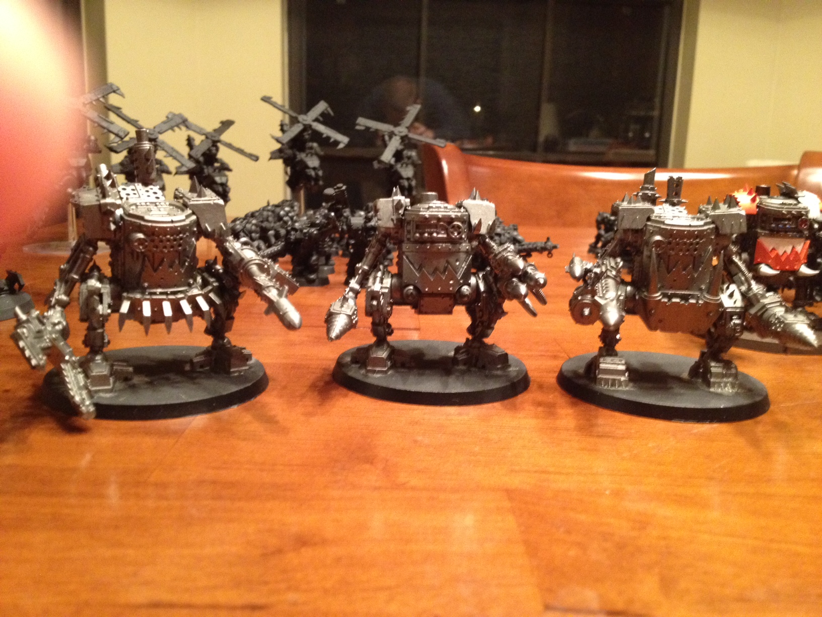 So, my Waaaagh is growing. It has been crazy at work so I haven't updated my P&M with pictures yet, but that is coming. My current force is mustering around 2000 - 3000 points of a Kan Wall. My backstory when I write it will explain why I've chosen some of the units I did and why I steered away from others. This growing army is supposed to be fun and the models I'm gathering are because I like them. Basically, this is a fluff list.