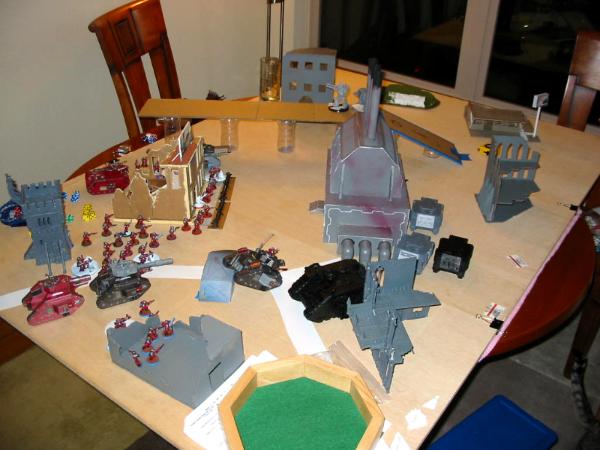 From here on out, all camera pictures will be taken from the Imperial Guard side of the table (with some slight moving around), and any reference to direction (left flank, right flank) will be from the Imperial Guard side.