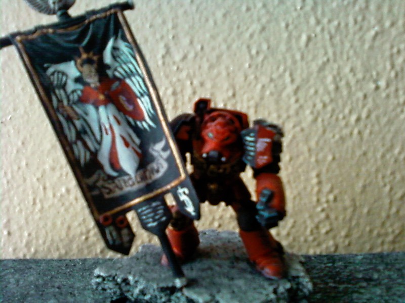 Hello this is my first attempt at converting a standard for my blood angels army. The flag is all freehand.