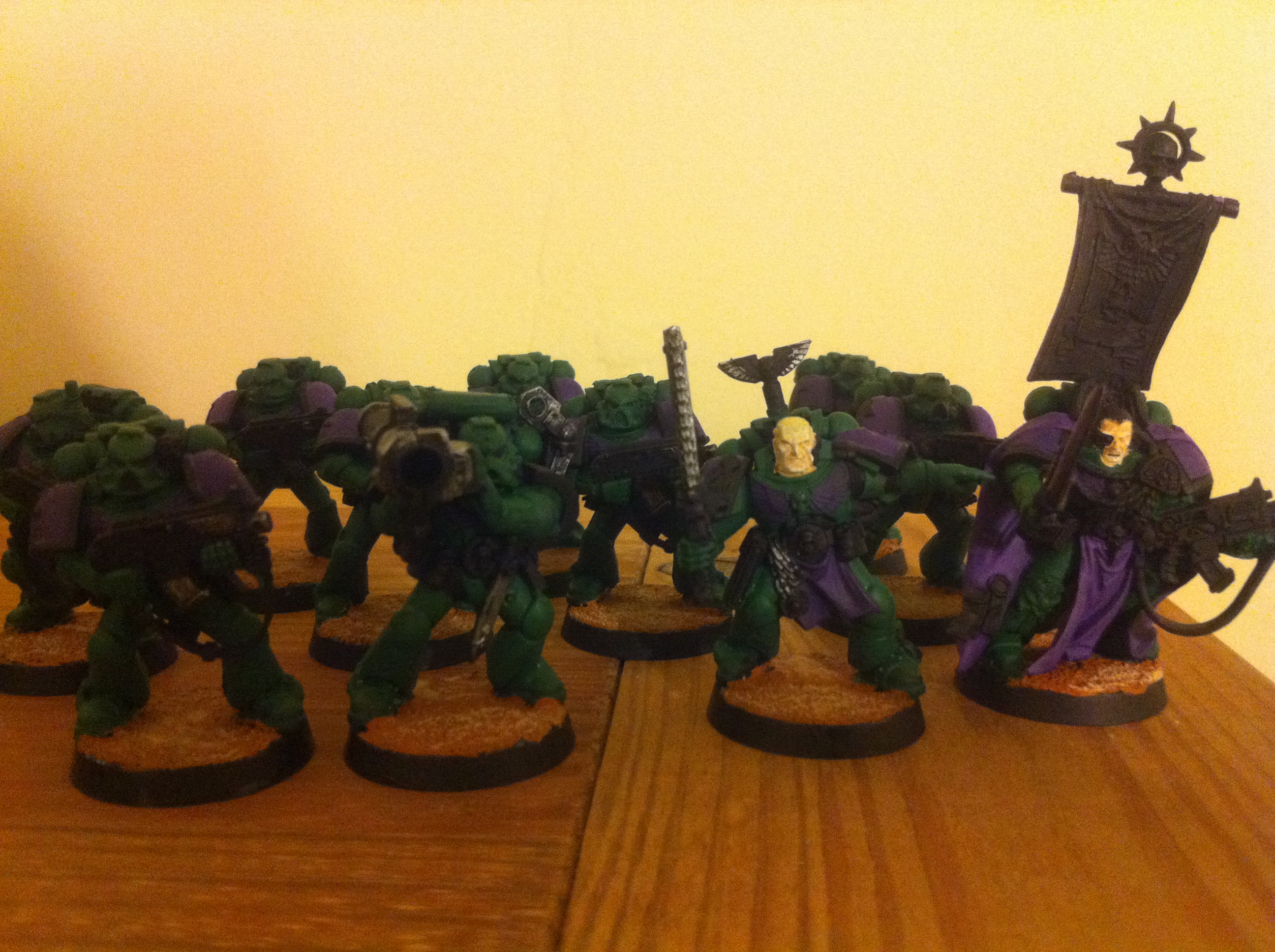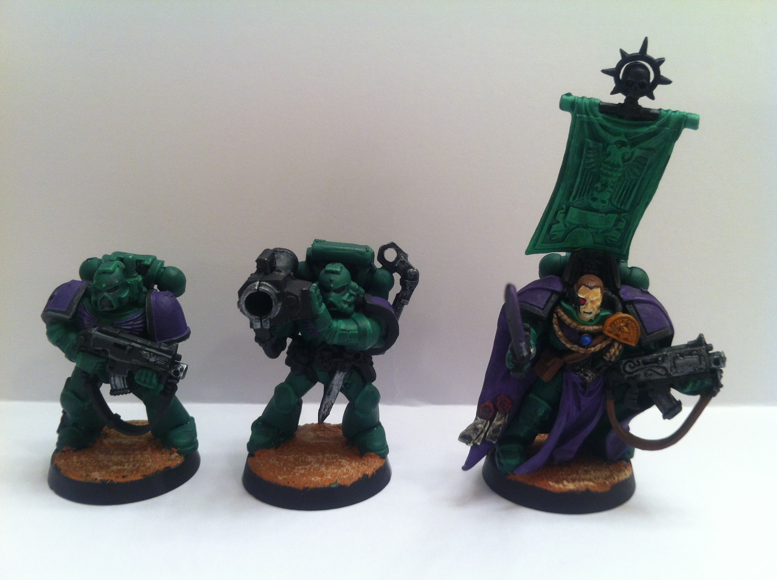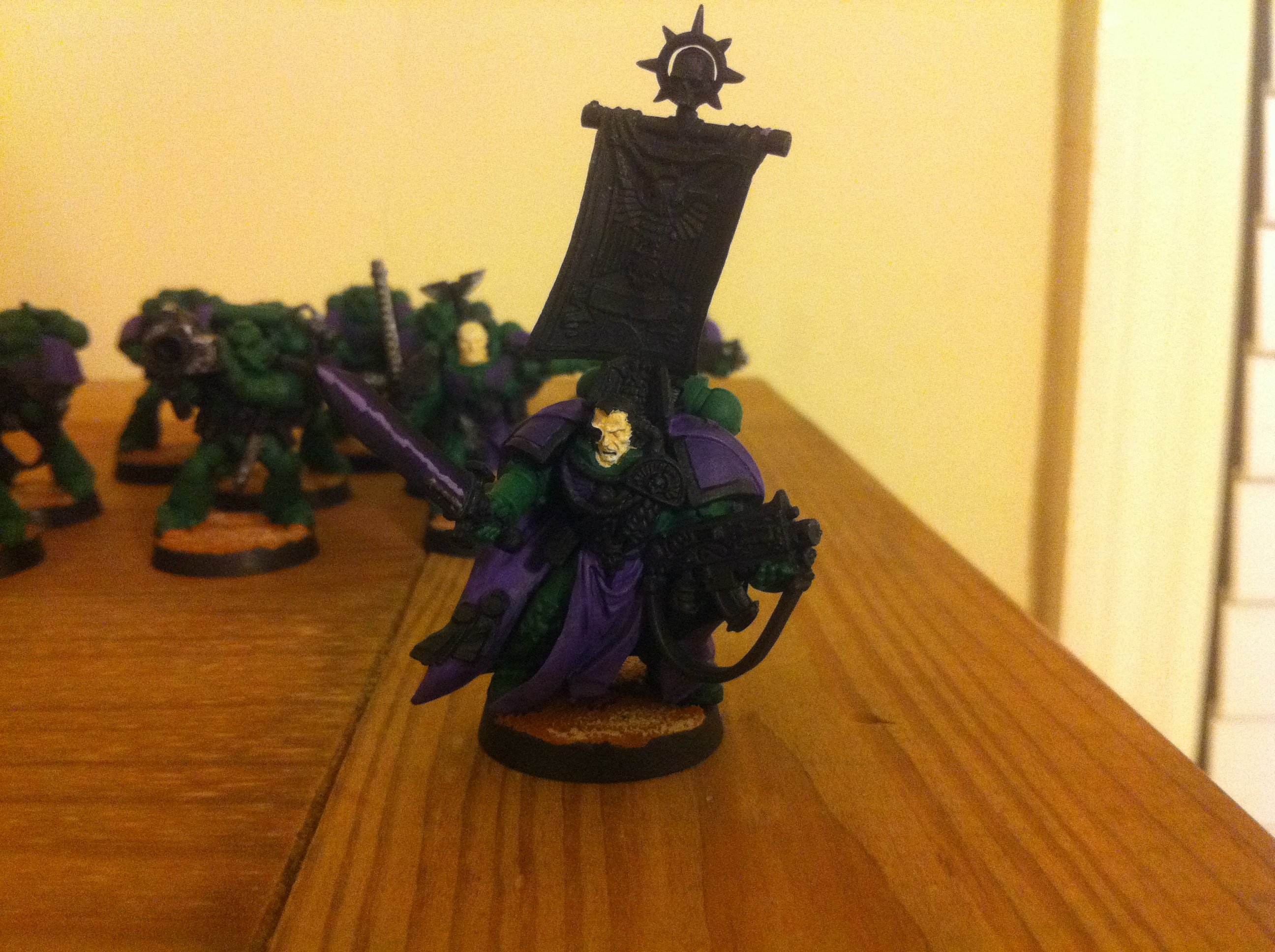 edit2: looking at it now, I'm going to drybrush a lighter shade of purple onto the Aquila and do lighter green highlights. What about all the other misc items like frag grenades, pouches, the Captain's Banner, the Captain's torso? What should I do there?