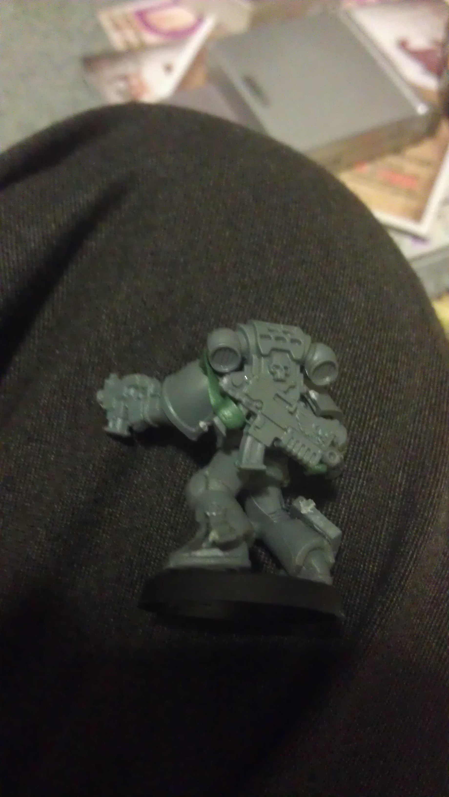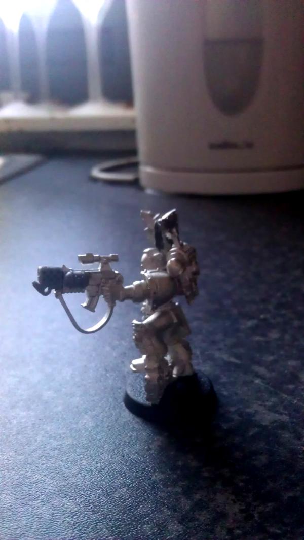 A quick update on the 'Nid Hunters, giving your girlfriend with no knowledge of Wargaming the instructions "Can you log onto my GW and order me the two Tyrannic War Veterans please? Make sure you don't get the same ones twice." Be specific that you mean two blisters, not two models  It's lighter on the wallet, but you end up two models short of the minimum squad size. The combi flamers on the two guys have are looking clean enough though, but the conversion to try and helmet to helmet-less model has gone awry to put it nicely. The only work around I've found is to give him a mkVIII collar and try to keep it as clean as possible. So far, not much joy, but I'll work through the night, and up until it's time to leave for work if I need to.