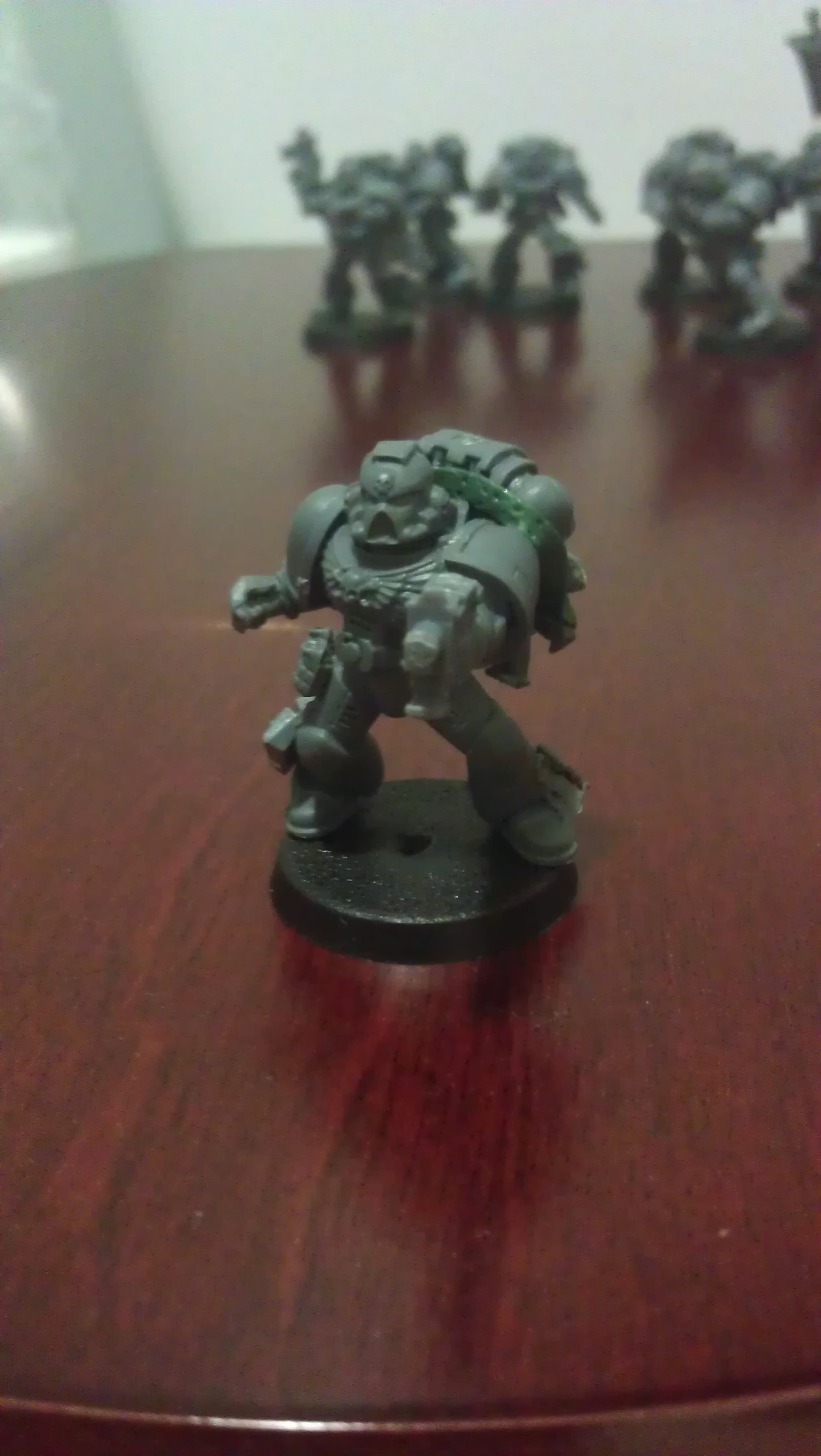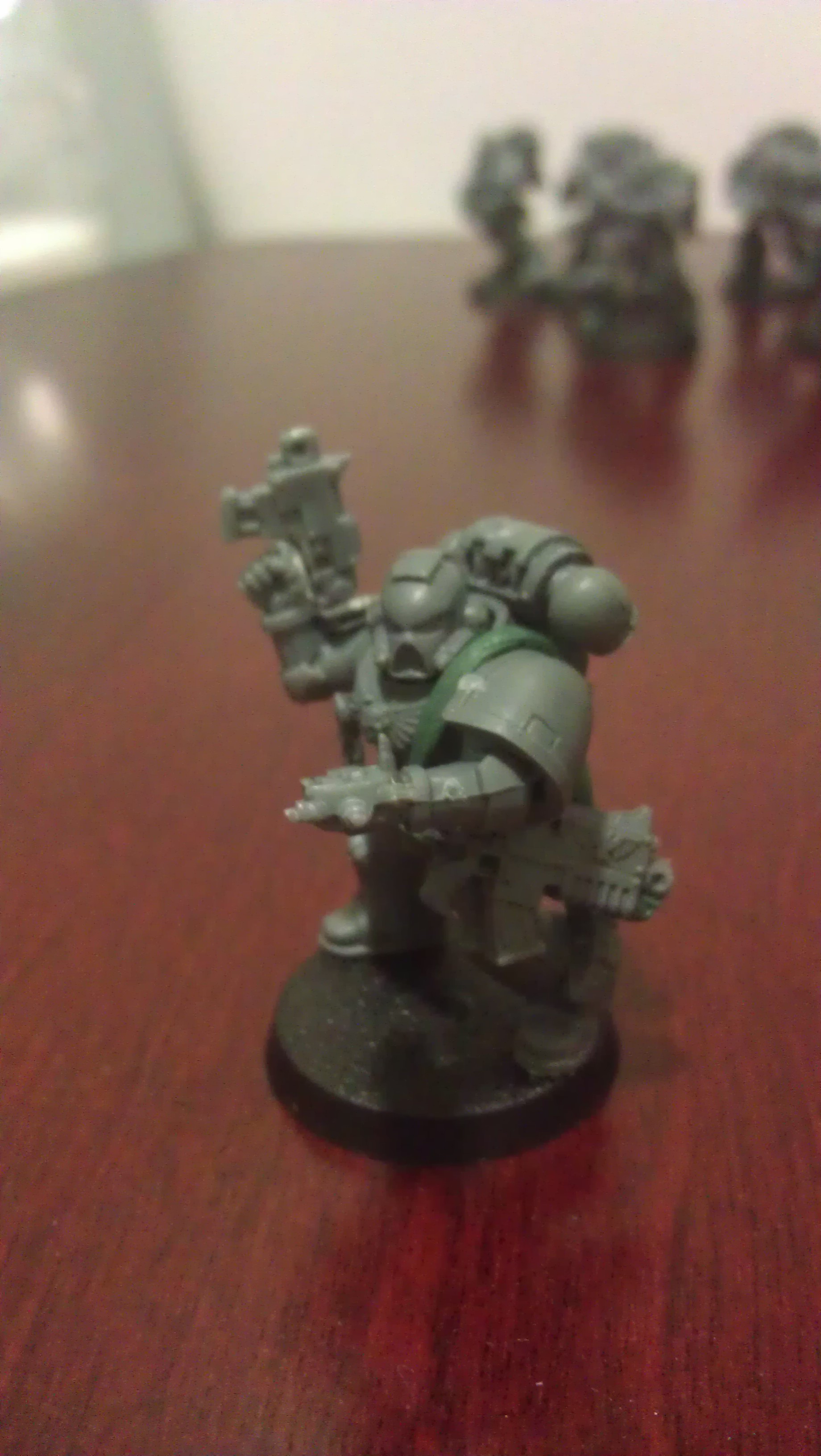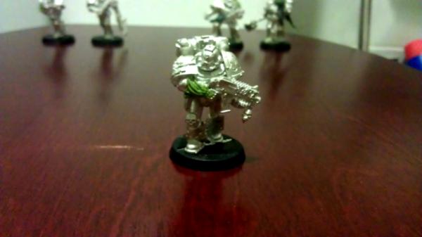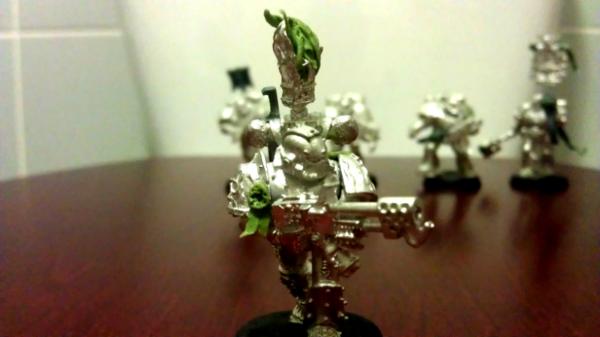 The Sergeant, I didn't trust myself to drill out the barrels in a Storm Bolter, so I stuck some green stuff at the end and poked it with some tweezers.