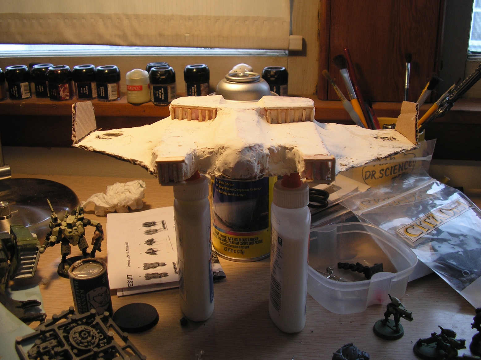 Firstly, as a fellow scratchbuilder of large/expensive/unattainable models, kudos! You get an an A for effort. Second, I agree, cover the edges to hide the corrugated cardboard guts & sand the fuselage smoothe. If you wanna reduce weight a bit, I use strips of card to cover edges of either corrugated cardboard or foamcore so spray primer doesn't melt it. Plus, it doesn't have to be sanded, which is always a plus.
