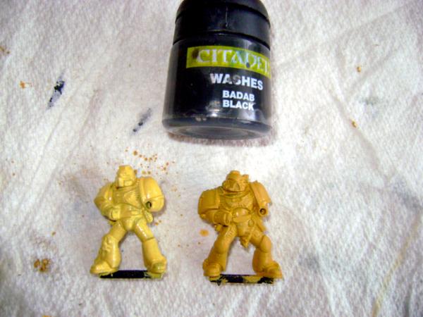 I will paint 2 AOBR marines one in GW paints the other in P3 and then apply the same wash with the same brush on both. I Will photograph everything.