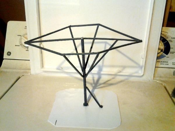 This is the starting frame work, from which every thing else will be built. Leave it to an ork to start at the top. Below is the frame with a killa kan for size referance. The final model will be two inches taller after I attach the legs.