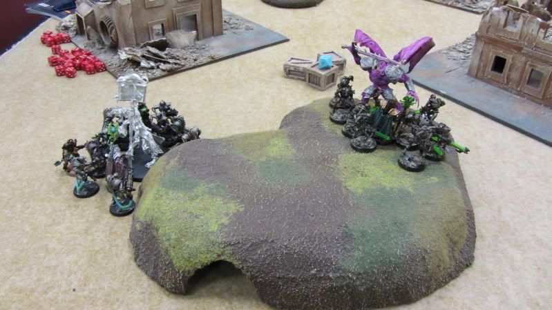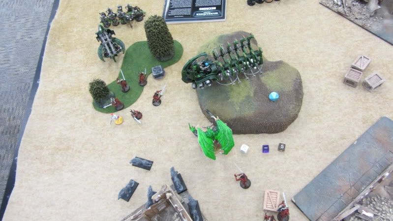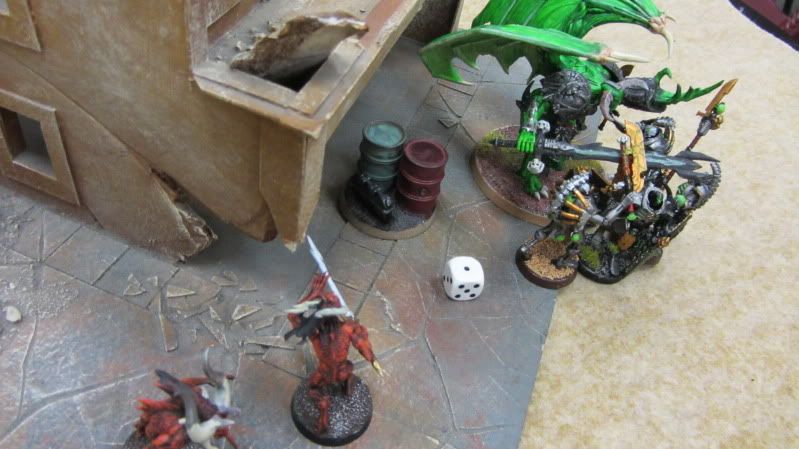 FateWeaver started an assault too, drawing Obyron away to help Zahndrekh. So now I'm hoping the MoK DP will finally do some good. But the lyches have 4++ and power toys. And he will lose Combat and take a few wounds.