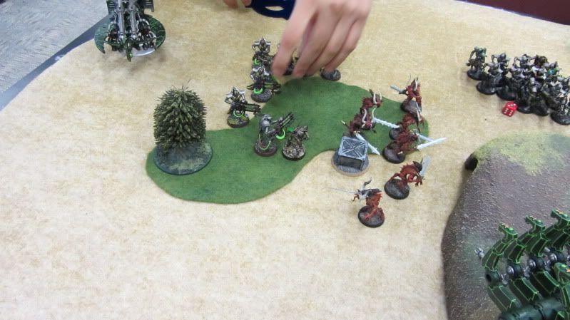 Obyron GhostWalks *back* into the path of my BCs. I don't complain. Zahndrekh is with the unit of Immortals that the BCs and Skulltaker were heading for. I'm guessing JM wants the lycheguard to be the speed bump for Zahndrekh.