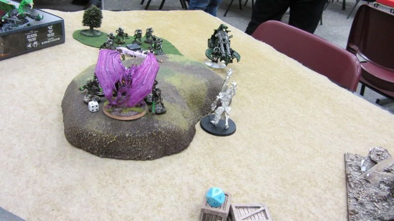 Further, he has really overextended with his Lychguard, he will pull them back after you DS if a pair of 'letter units are close enough. Otherwise he has no real good way to win.
