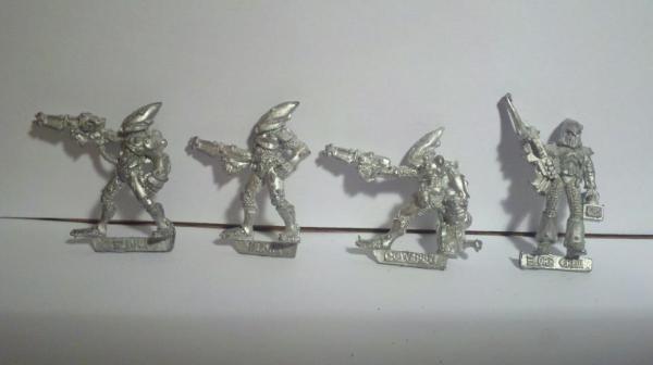 and here is an Eldar champion with a Powerfist and a sword and a helmetless Eldar. The powerfisted sword wielding Eldar Champion seems rare, as I haven't found one anywhere else for sale.