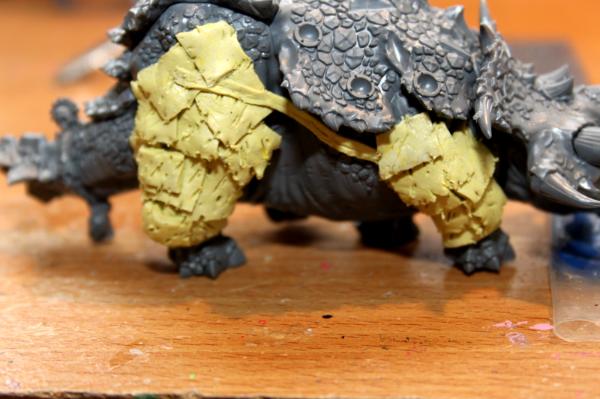 Automatically Appended Next Post: Working on some scratched up armour, sadly due to a slight miscalculation I have run out of GS and simply cannot afford to invest in any plasticard at present, as such I have mocked up some armour plates for the Steggadon on one side out of milliput as a tester.