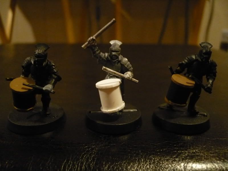 This is also a huge frustration for me as I already have been modding models for these. The war horn gives all allied models on the board +1 Courage, which is HUGE in SBG and the movement bonuses for Drummers are also essential kit for every army. I was stunned and a little more than annoyed that the Isenguard Uruk-hai were snubbed f both pieces of equipment. Here are mods I'm working on anyway: