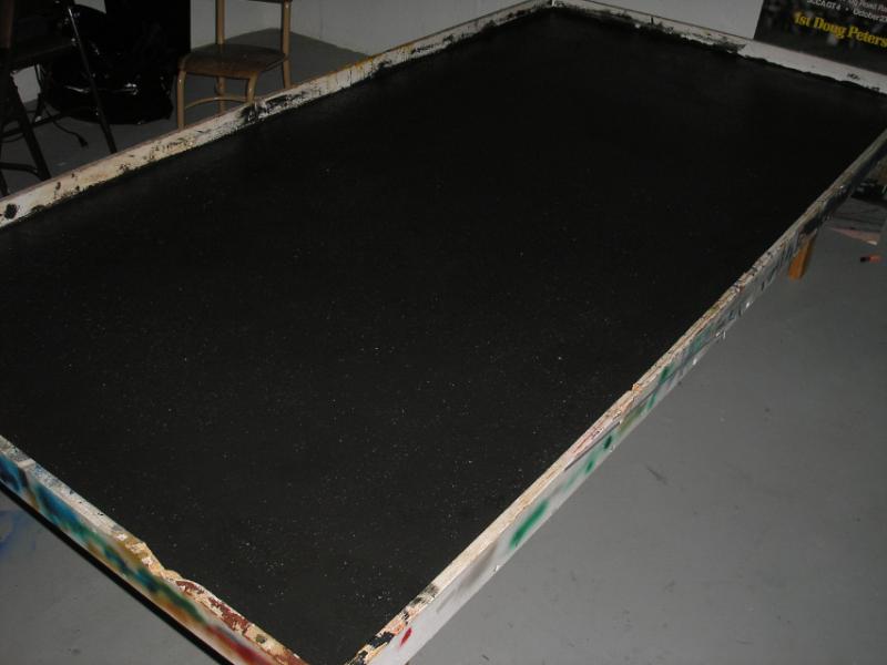 1. Using Probond Elmer's glue I am gonna do my table in quarters probably. After laying that down and spreading it around with an old brush I will put down some black sand (if I can find economical black or very dark grey sand).