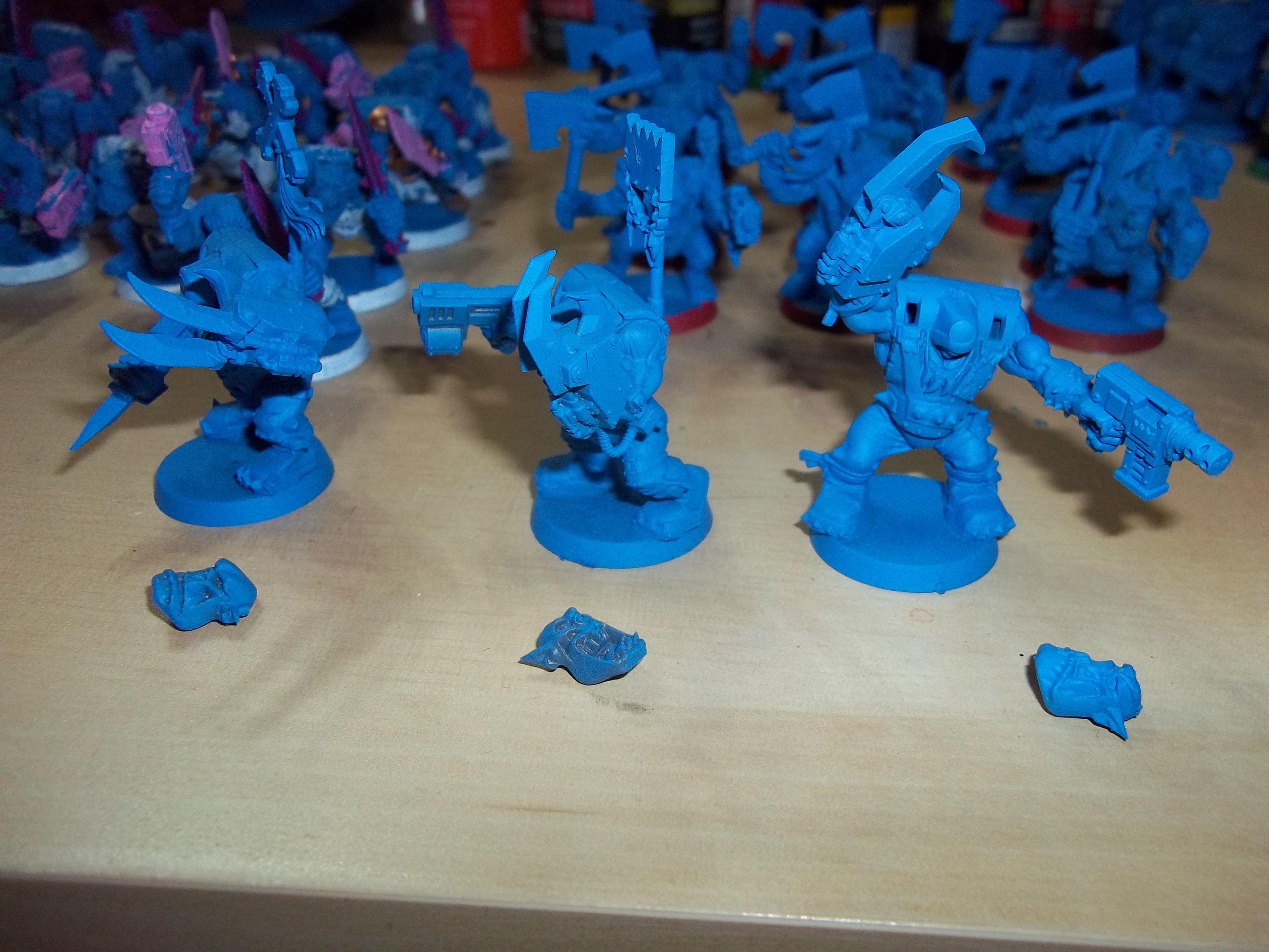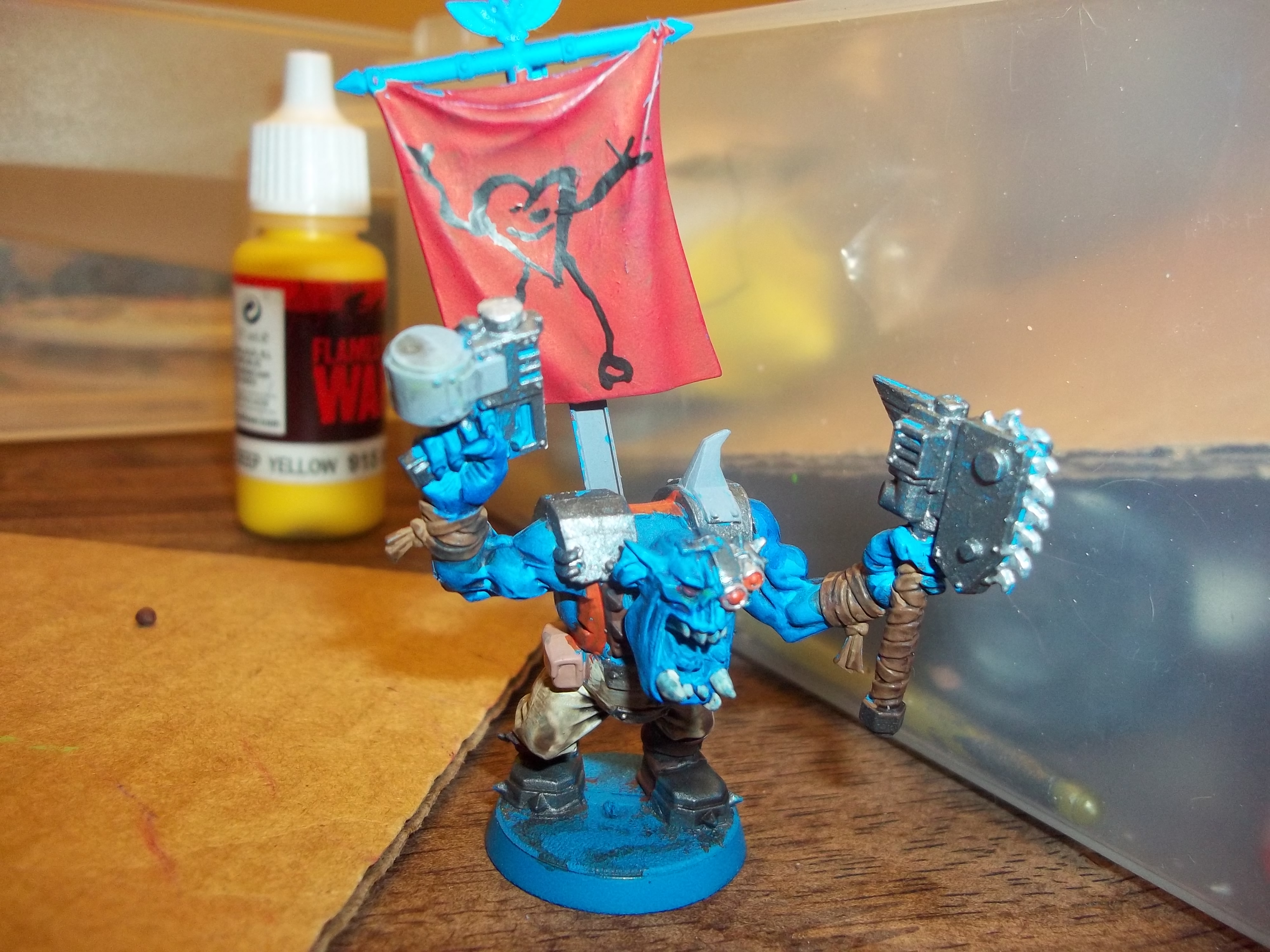 Yes, blue skin. She did not want to go with the normal green skin you see on Orks. After some debate on her own, she settled on blue primer from Army Painter. It was the blue or purple. Either way, I would have been fine with it.