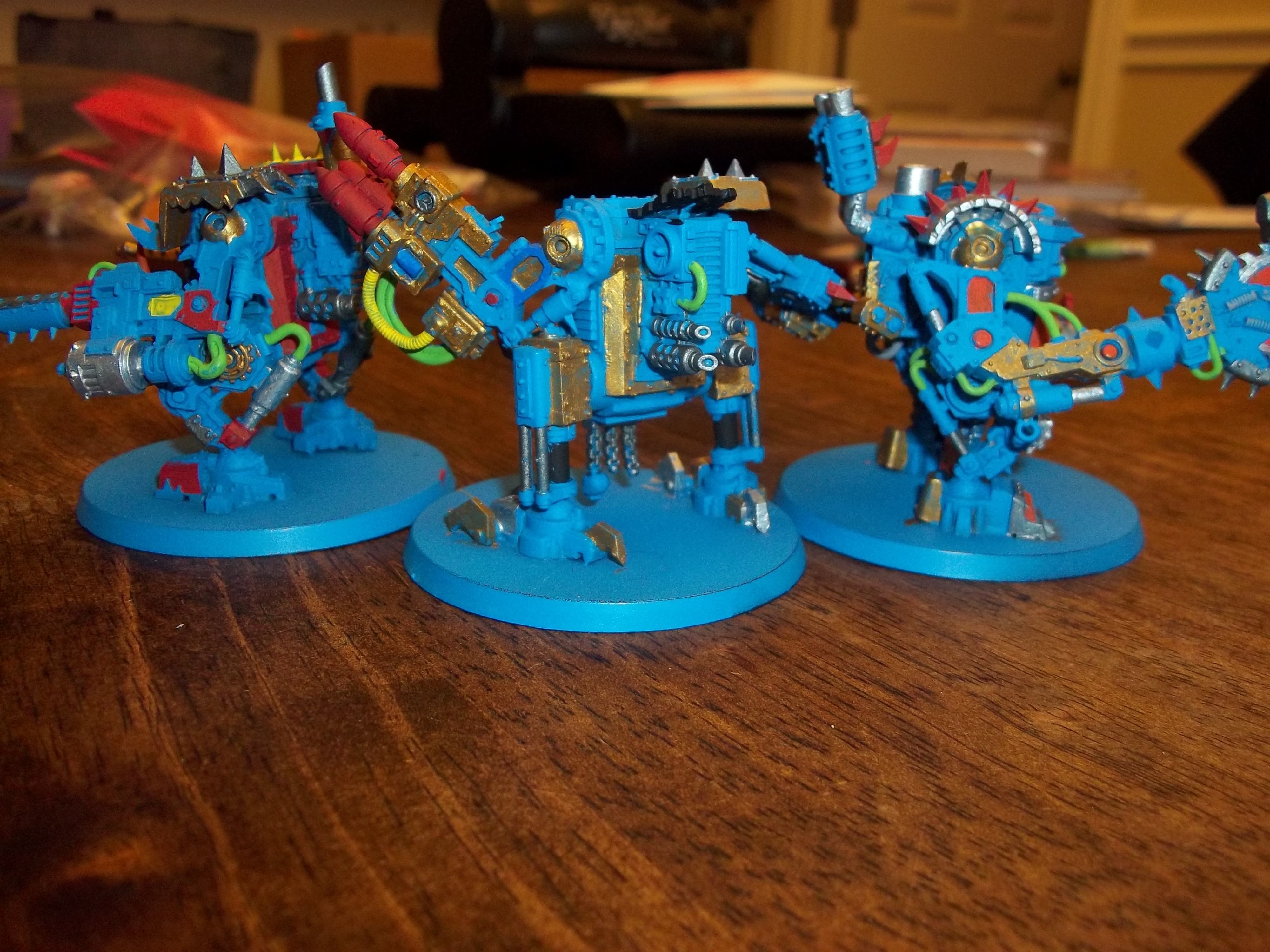 Killa Kans are done, sort of, always more to paint on them, but, for now, table top good. Daughter has to get some shchool work done to get working on her ork boy mob of 18 boyz. Have to do some chopping and converting for the Nob that goes with that group. New pics though.
