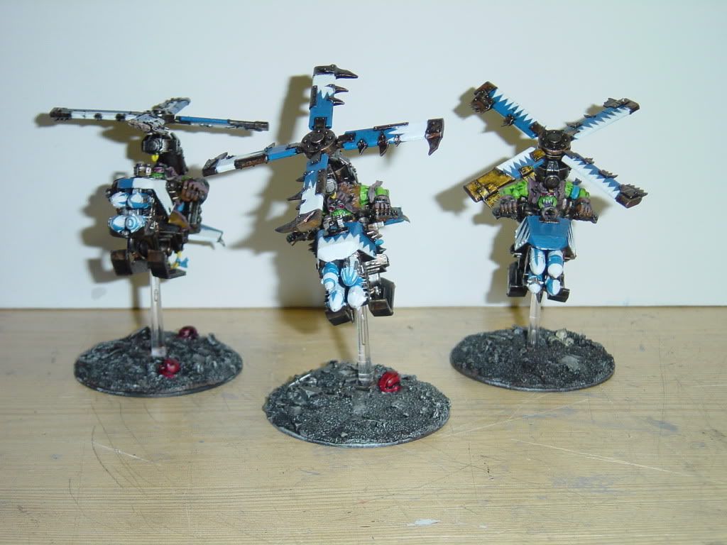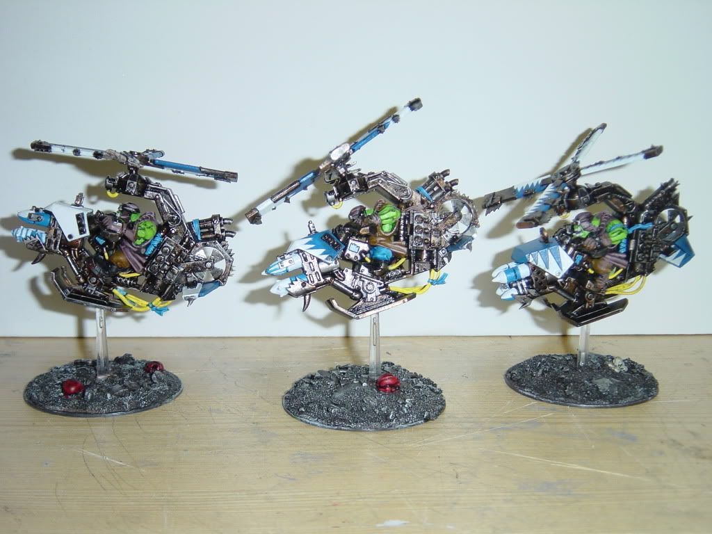 The Orks are upto 45 Boyz, 10 Nobz, 5 Lootas, 5 Burnas, these Deffkoptas and the Warboss.