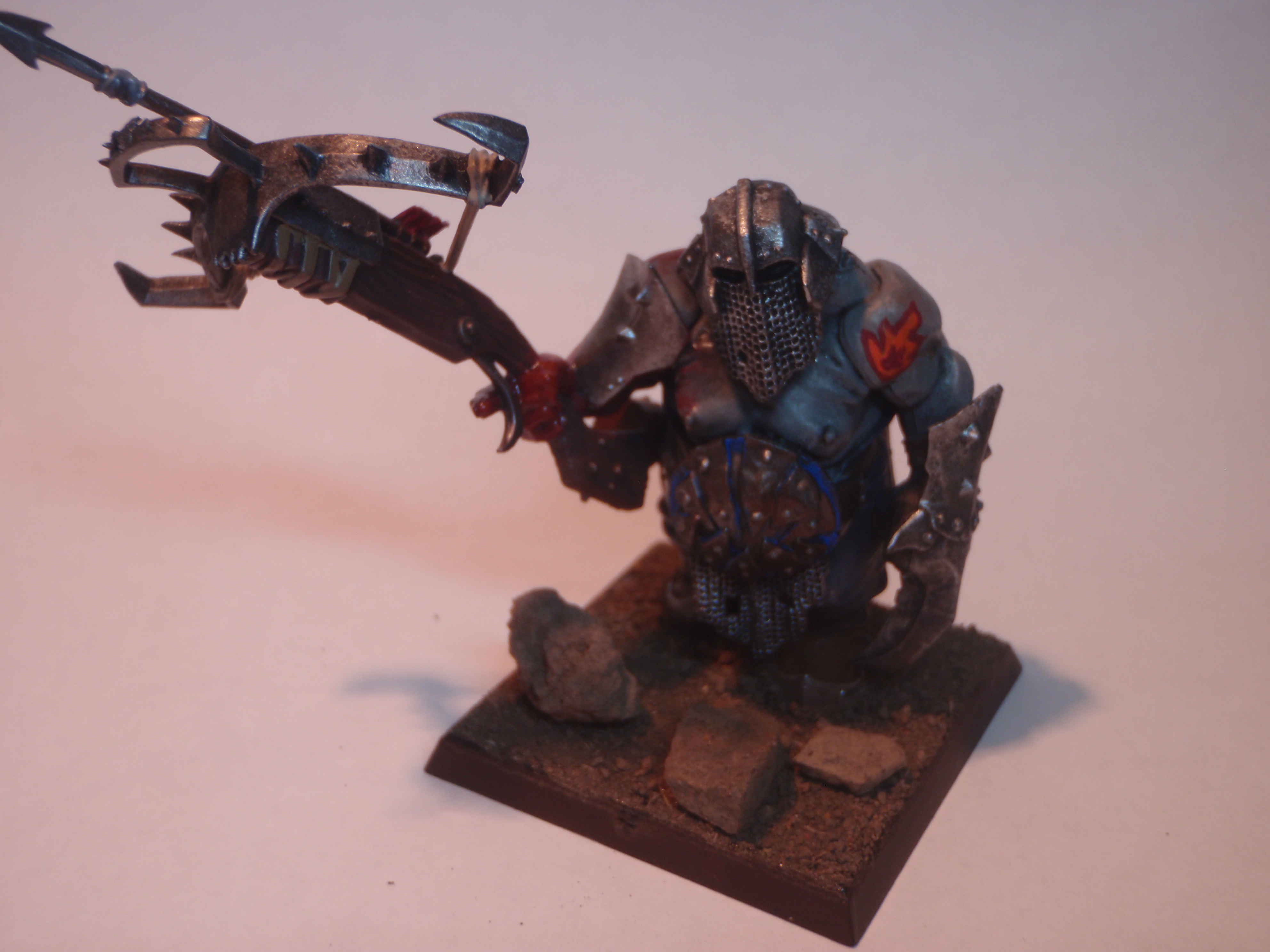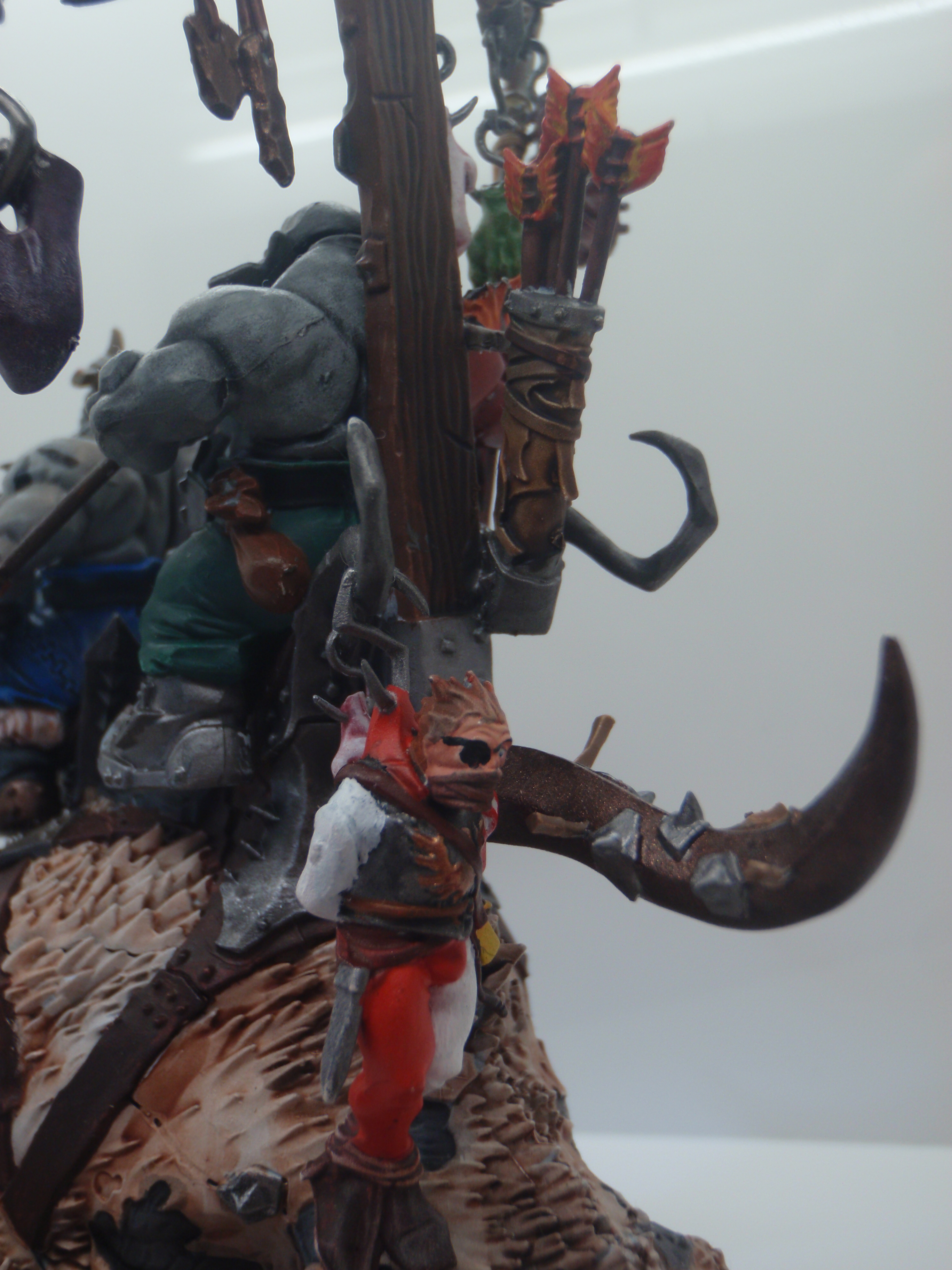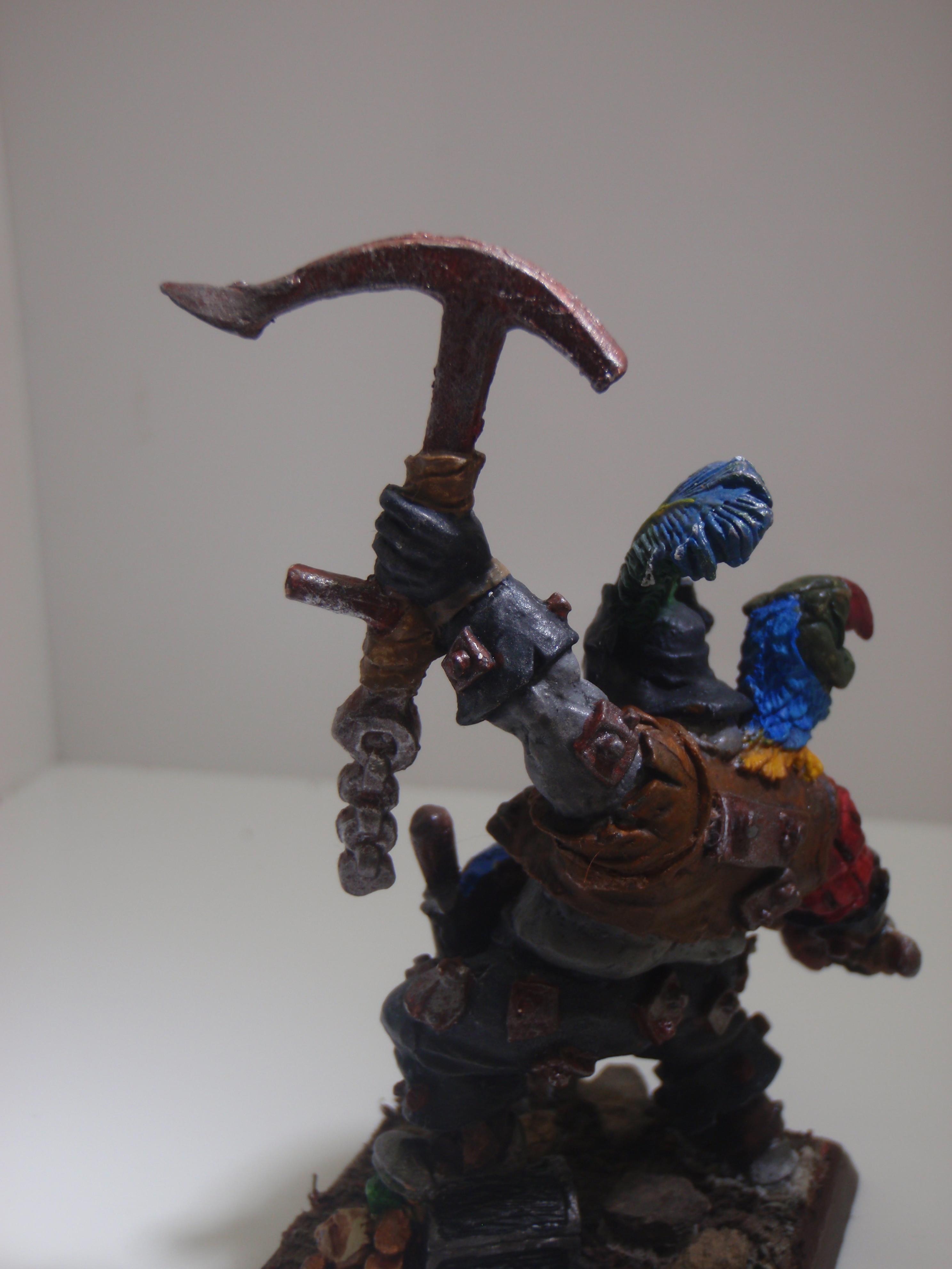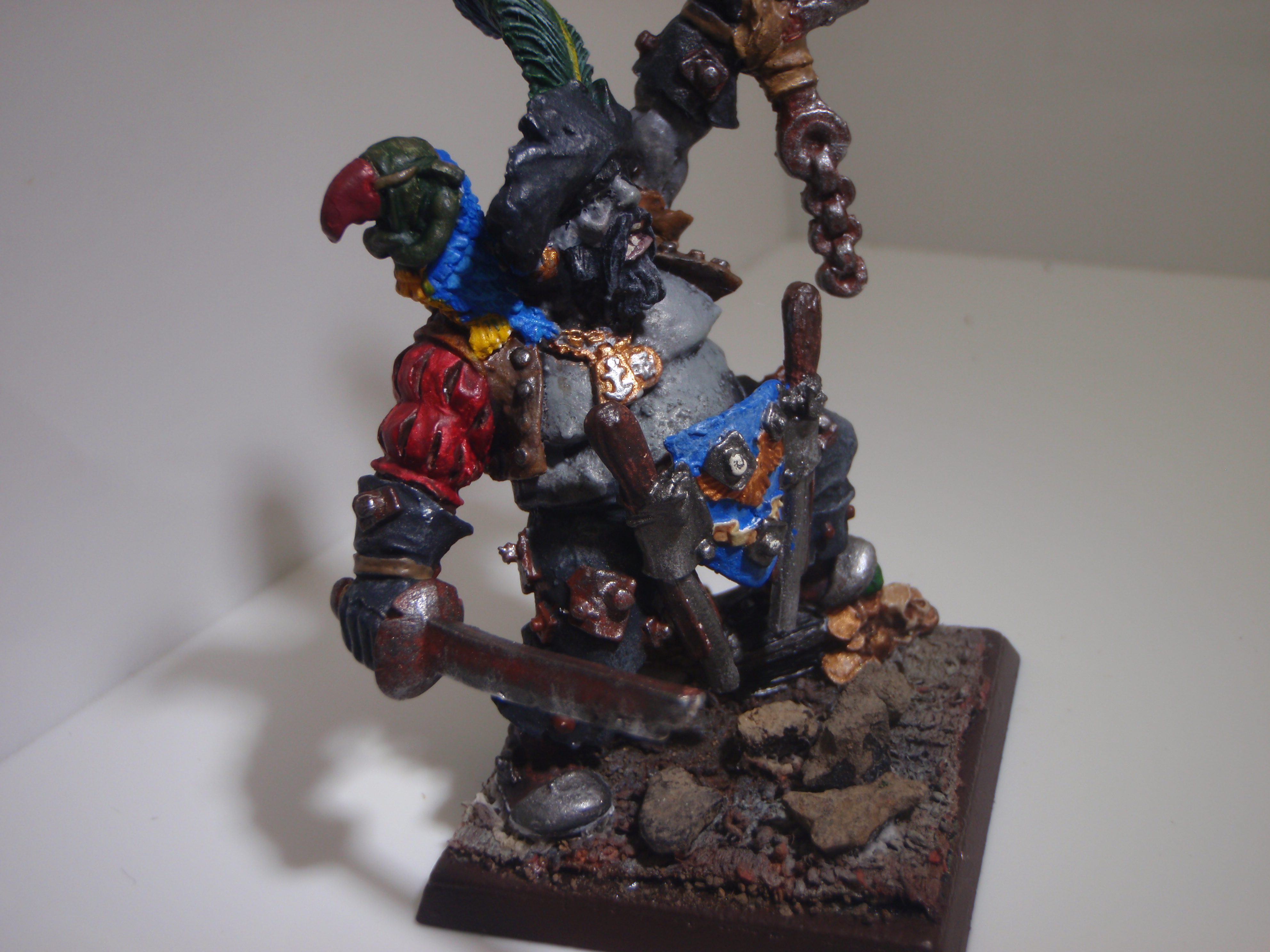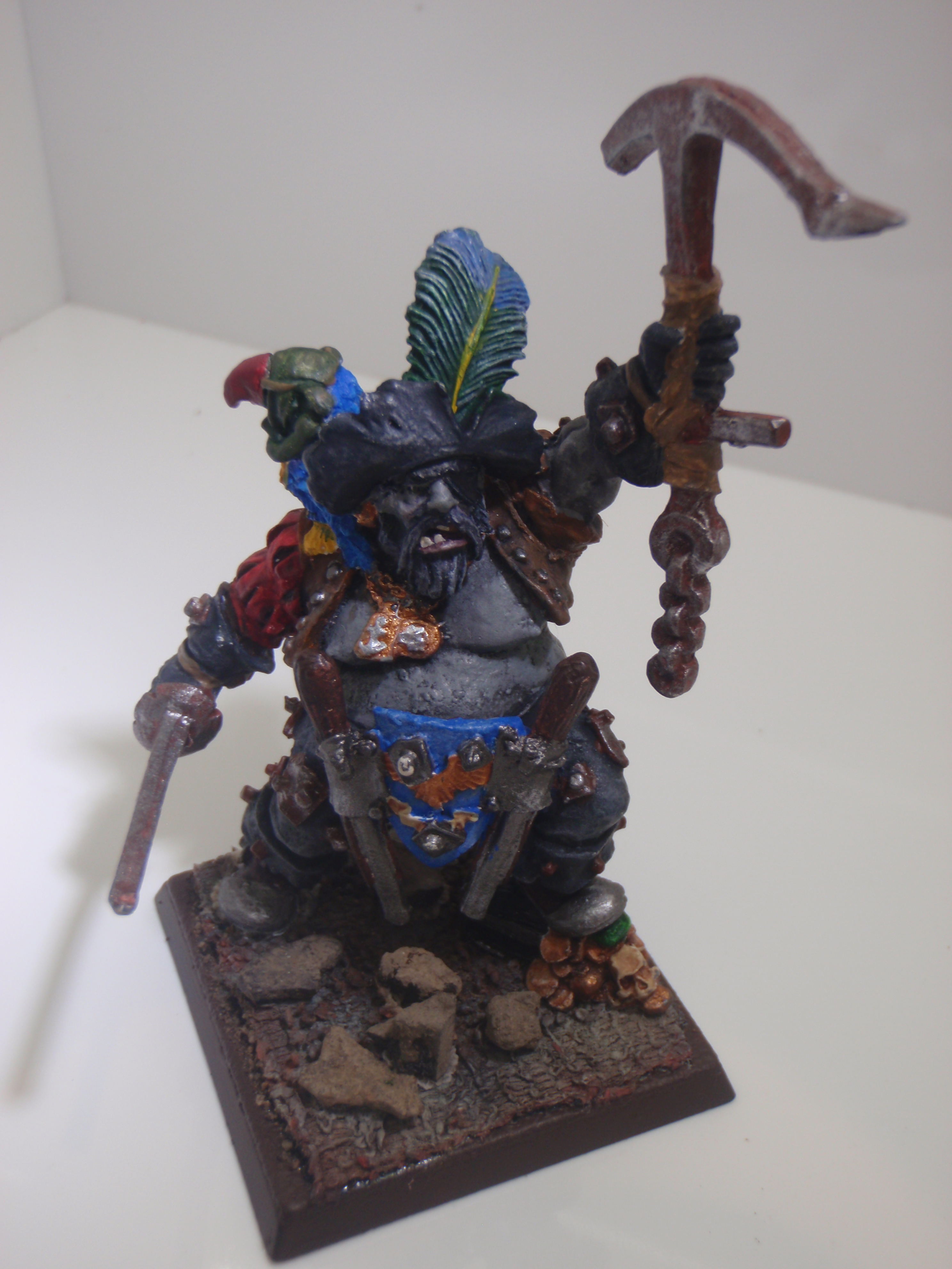 The Pirate Ogre looks pretty good, though i would change up those bright colors on him. The rust on his weapons however is fantastic (i am a sucker for rusted effects on these minis, and now have 2 armies based around rusted equipment)