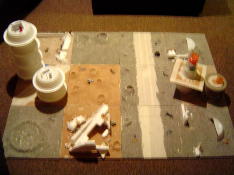 Thanks for the kind words about the board.The bowls are plastic but i hear you about meltung the strofoam.!I have clear coated the styrofoam with slightly watered down pva glue.Again thanks man. Automatically Appended Next Post: StoneRaizer wrote:Looks like a Tau or Eldar board you have going there. Nice job if that's the theme you're going for.