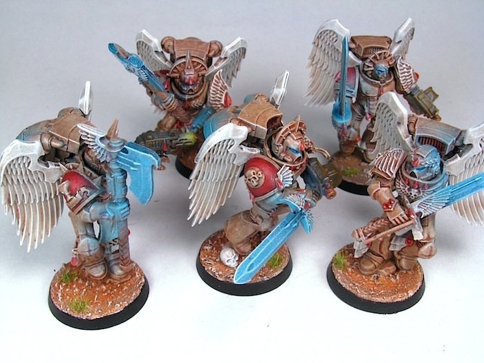 Love the blades, and I think they go well with the less luminous armor. I agree though that the meltaguns are looking kind of off, would have preferred to see some sort of red-hot effect to contrast the swords, of simply a passive "turned off" sooty black color.