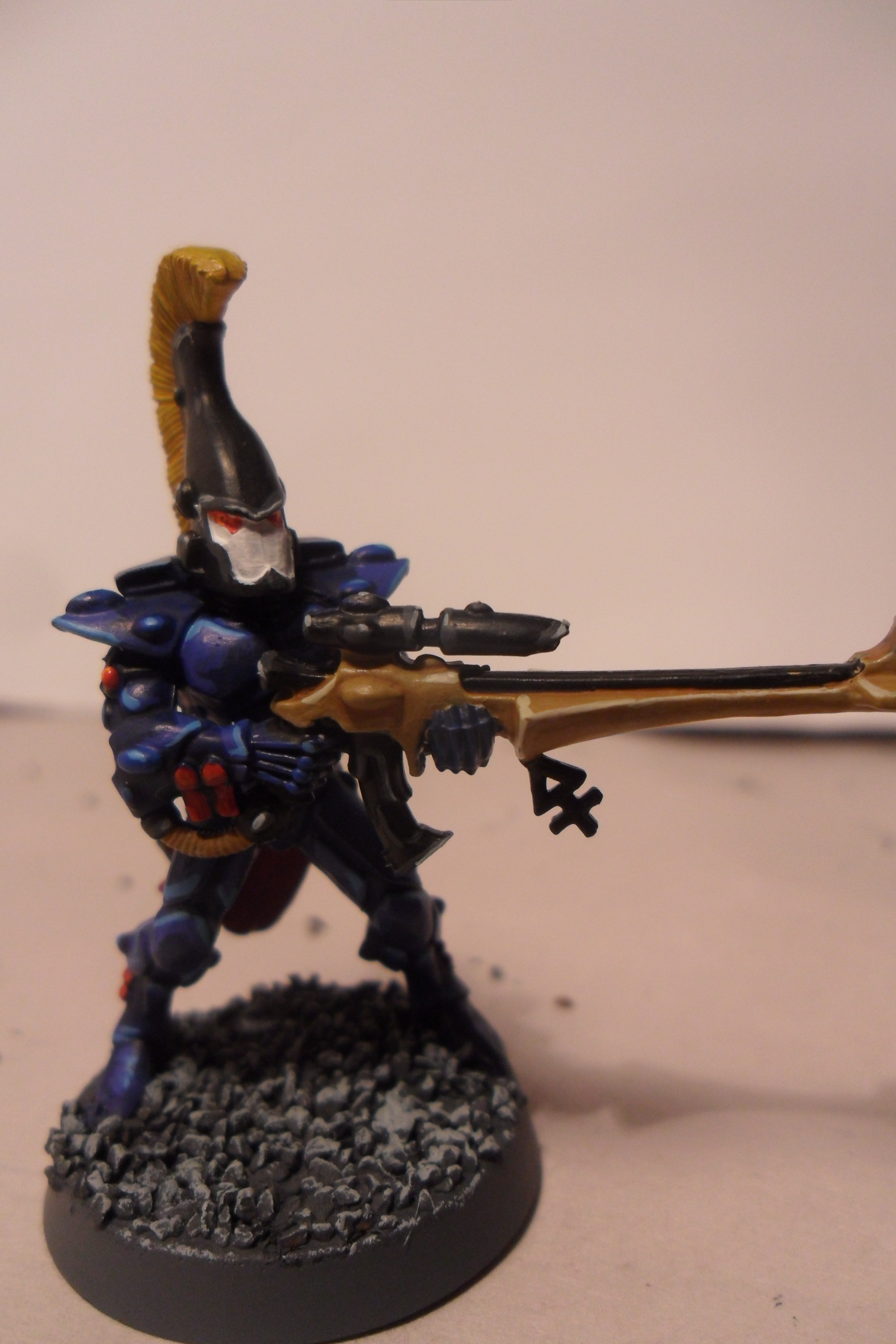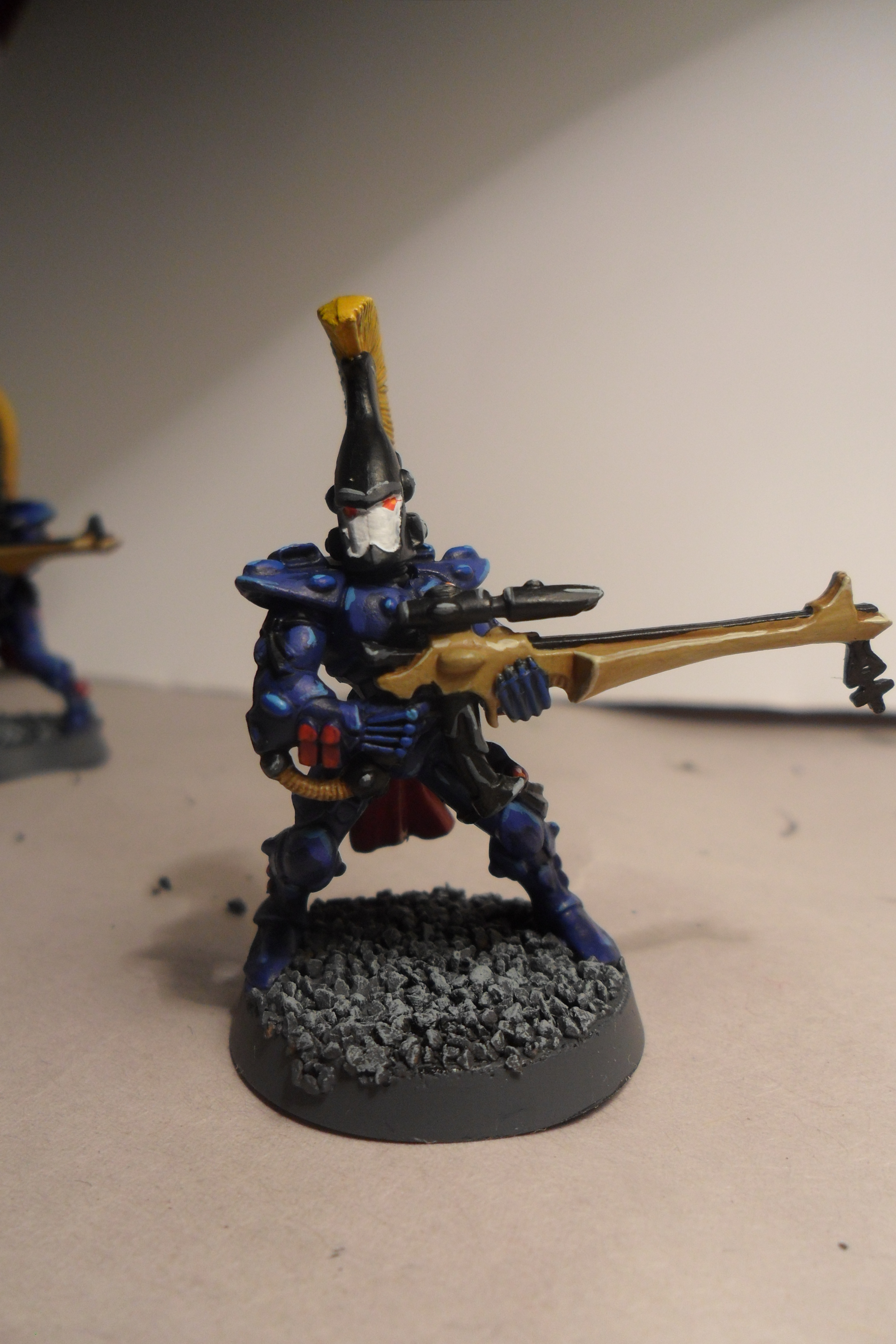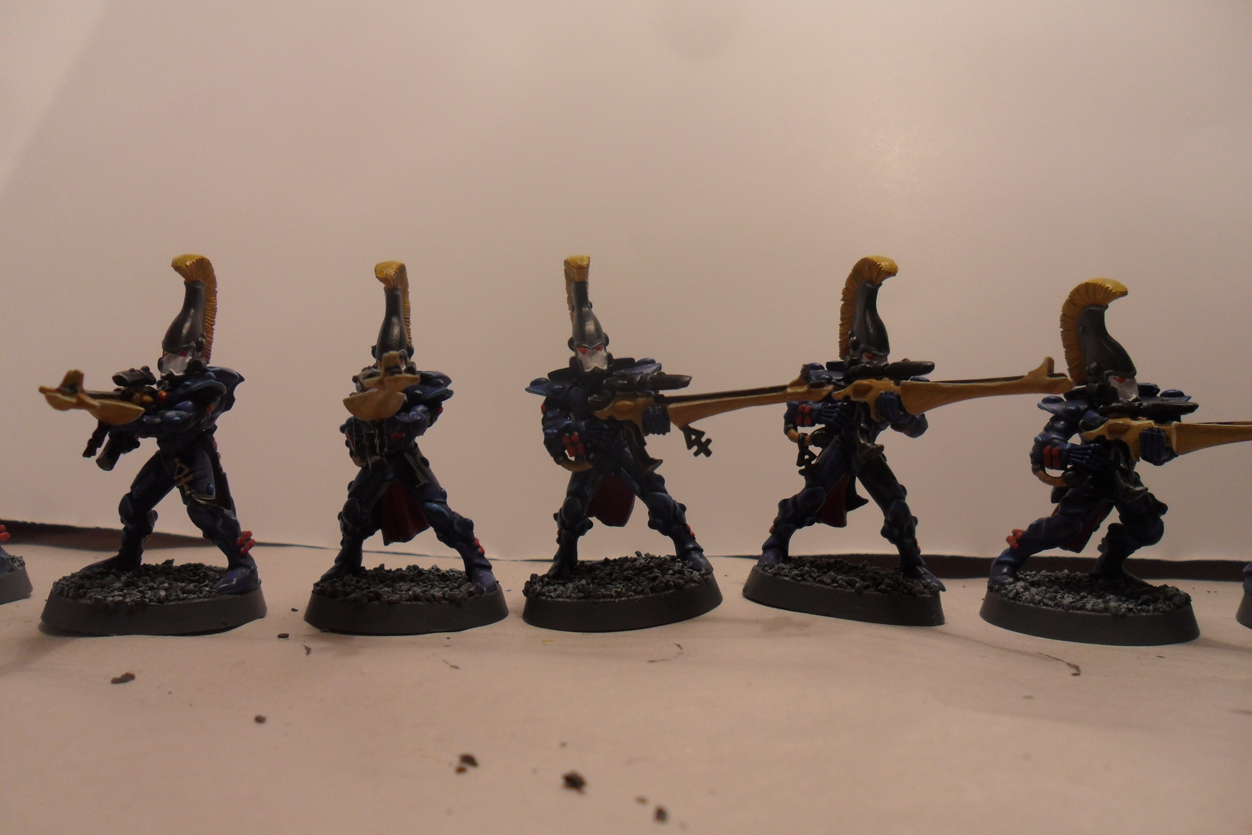 I'm not sure if it is just the pictures, but it looks like you've done a good job of making their (splinter rifles? shuriken guns? frilly space-elf weapons...) look like they have a wood grain. Was that intentional? Does it look that way in real life, or just on my monitor? And if it is actual, how did you do it? It looks great!