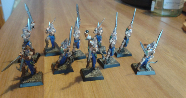 Still sticking with the asrai - and I've finished painting my 2000pt army list! Painted the wardancers this week, who weren't as bad as I was expecting once I realised that I didn't have to paint each tattoo as a crazy intricate pattern. There's still some glade riders, more glade guard and a couple of heroes to paint, but I'm really pleased that I can field my 2000pt force fully painted now  Will try and get some pictures up soon, but for now, here's the wardancers: