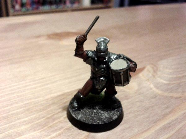 I've also painted another sorcerer for my Thousand Sons (because any self-respecting Thousand Sons player can never have enough sorcerers!), as well as converting and painting a drummer for my uruk hai. It's always irked me that you can only get a scout uruk-hai musician when 99% of the time you'll want the musician in an armoured uruk-hai formation, so I've converted one from a plastic uruk hai, a Napoleonic drum (I think?) and a bit of copper wire. I'm really pleased with how he turned out, and have a second one waiting to be painted.