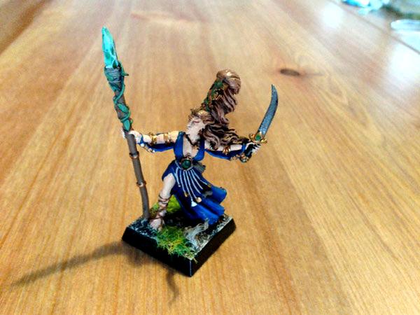 I've been focusing on just one model this week - a combination of wanting to do a really good job on it and having no sand to base anything else  So, here's the Spell Weaver who'll be leading my Wood Elves. I'm pretty pleased with how she turned out, but of course any comments are always appreciated!