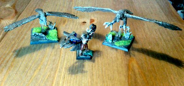 Skaw the Falconer and his eagle friends. I'm pleased with how the colour scheme turned out, and think that he fits in rather well now.