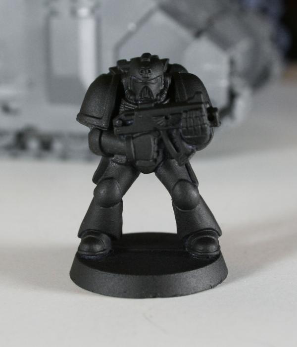 Just sprayed a 2nd edition bolter marine. I'll upload a pic once it's dry which could be up to 25 minutes.... I sprayed some spare cardboard first and it seemed a little thick. I backed up a little and gave a couple of light passes... I've got a couple other snapfit bolter marines to sacrifice for experimentation... Edit: Here's a pic of the painted dude. The paint covered well and didn't fill in details (what litle there was).