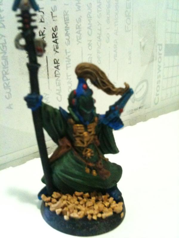 Here's the sage, built using the Chaos sorcerer plastic kit. We've come to call him "Space Pimp" because of his appearance, although I lost his head and need to find a new one, not sure what for that yet.
