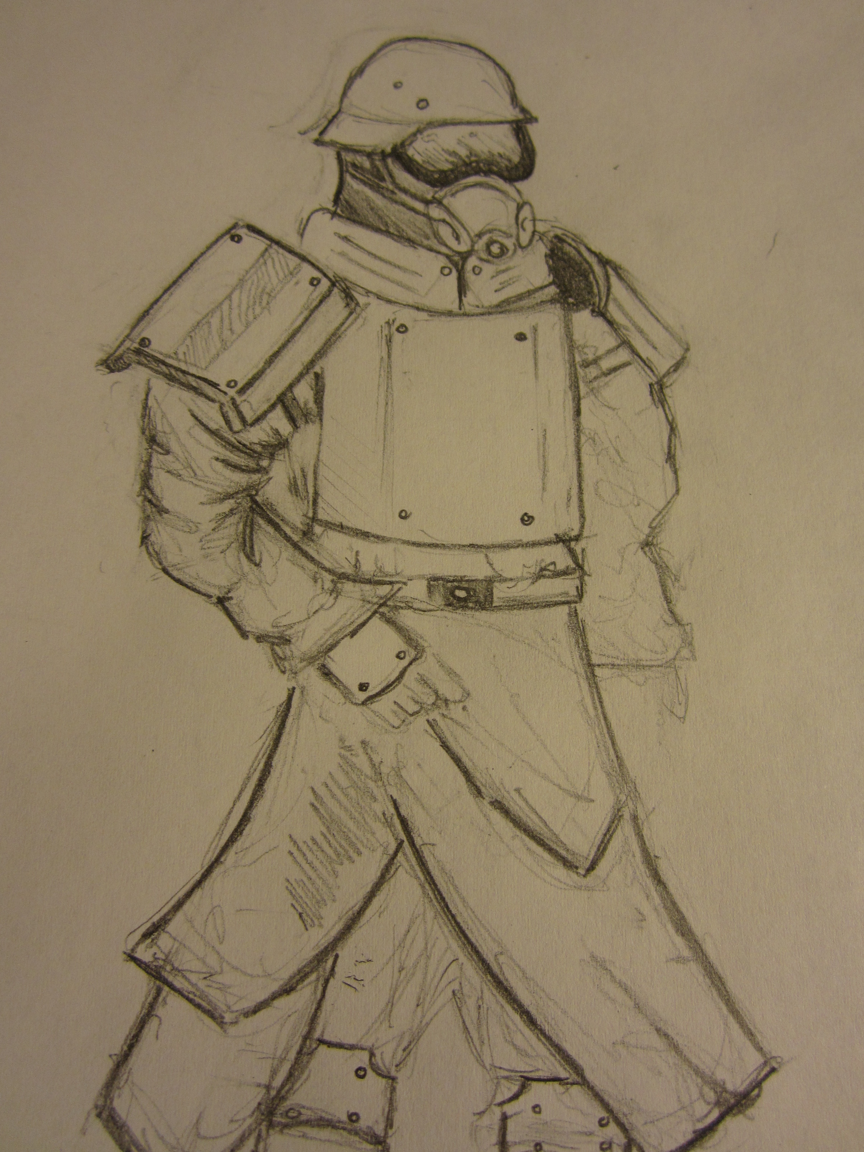 And more sketch spam. My initial ideas for what a Dorok trooper would look like. It conflicts a bit with the existing fluff, so I'm not sure on it, but what do y'all think? ^^