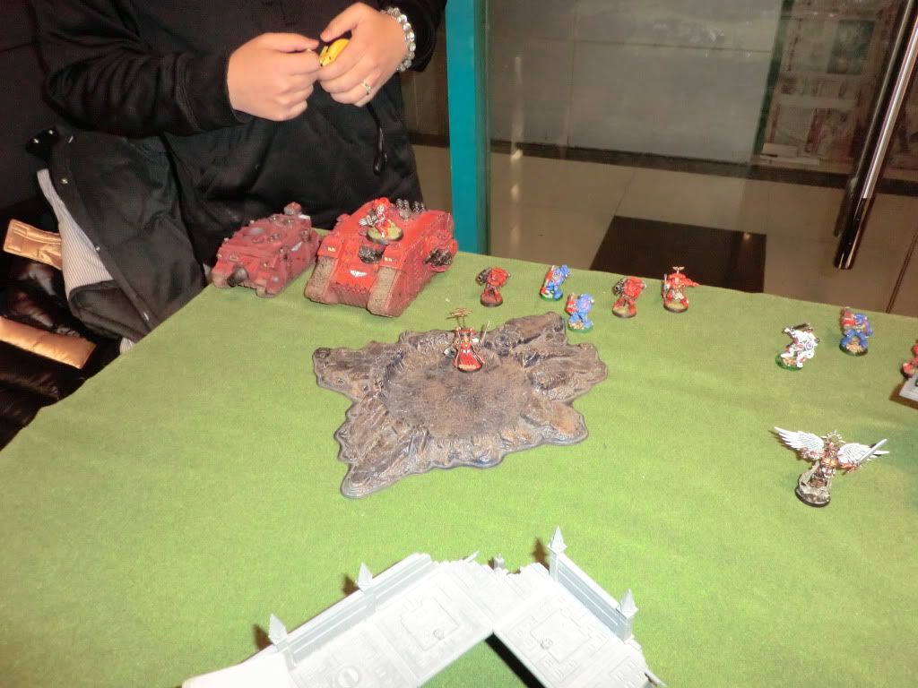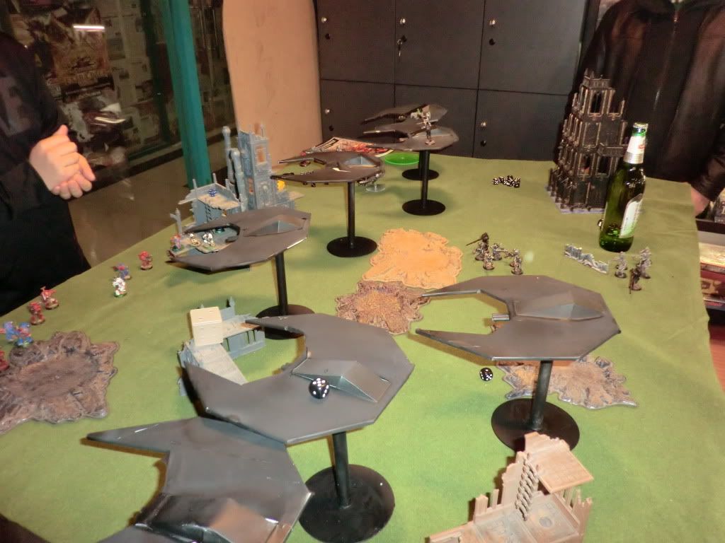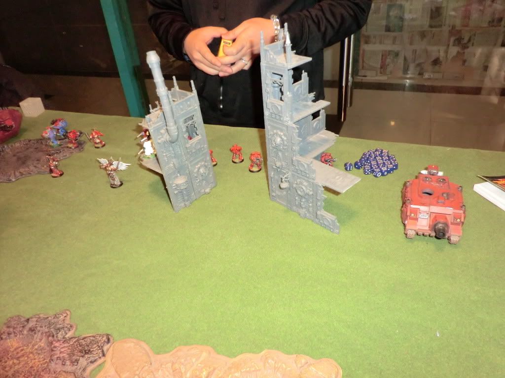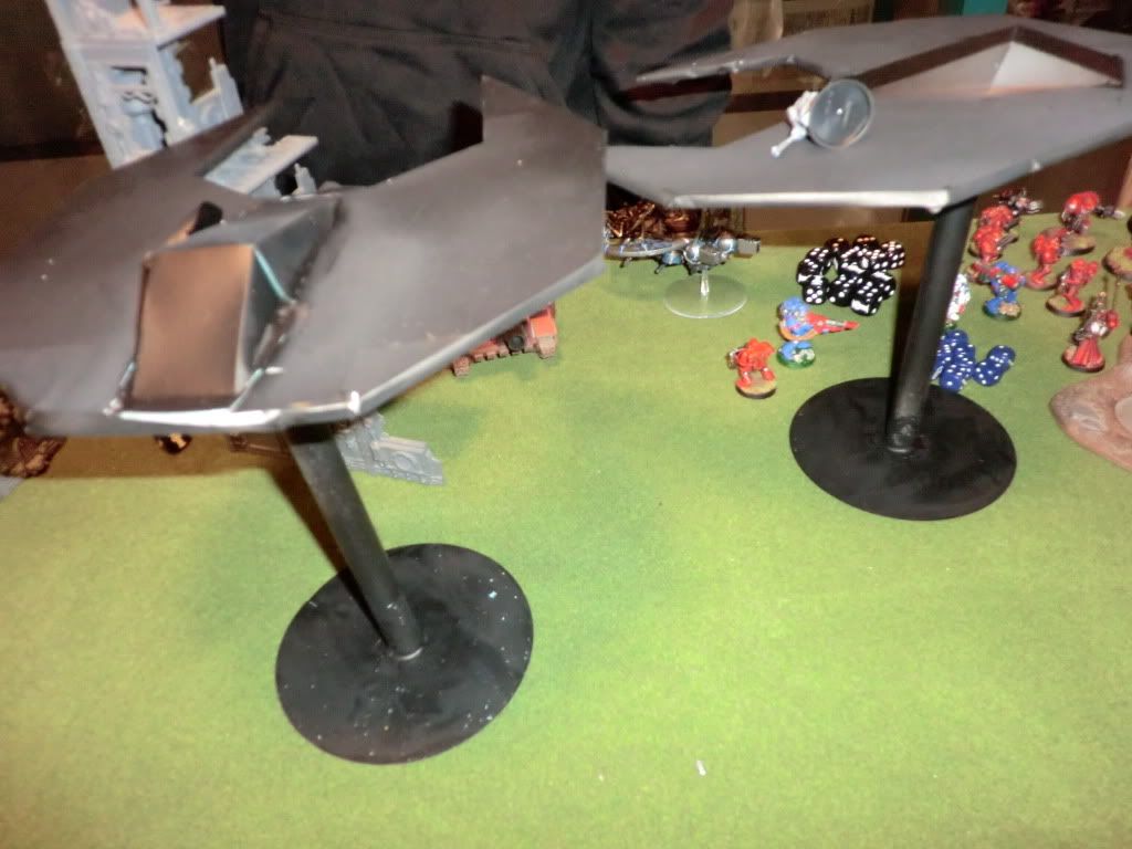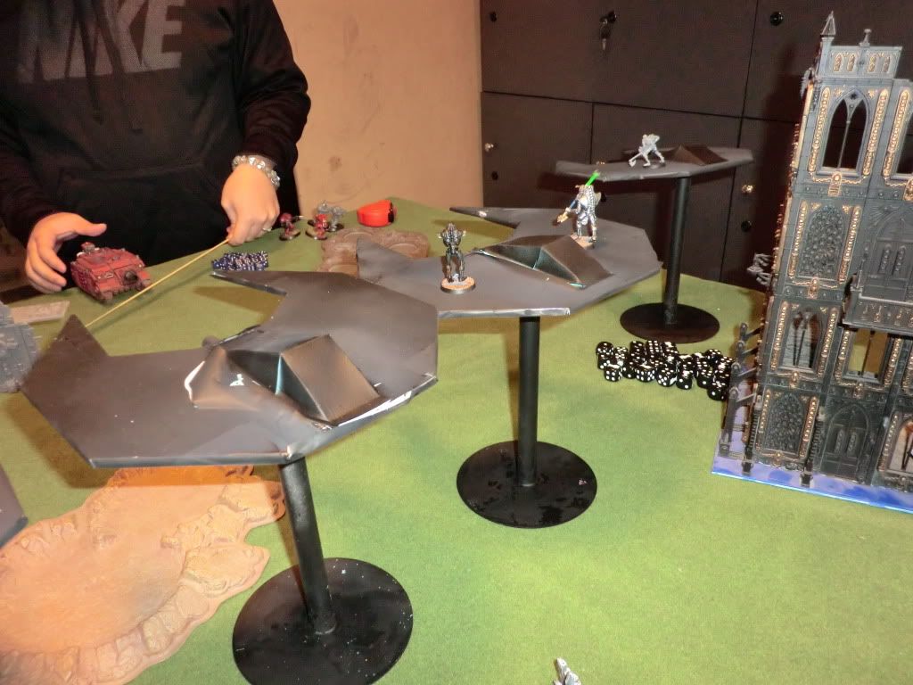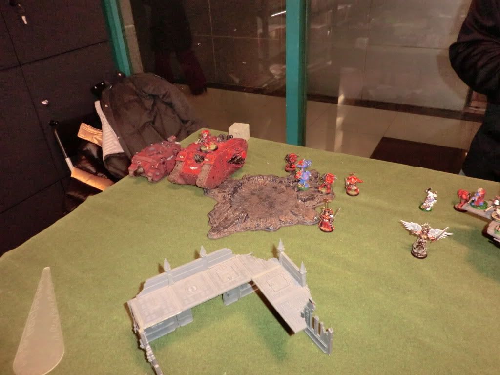 No pics since nothing moved and nothing happened. He had a pretty abysmal turn. Landraider shoots 2 lascannons at 2 different Doom Scythes and rolls double 1's to penetrate.