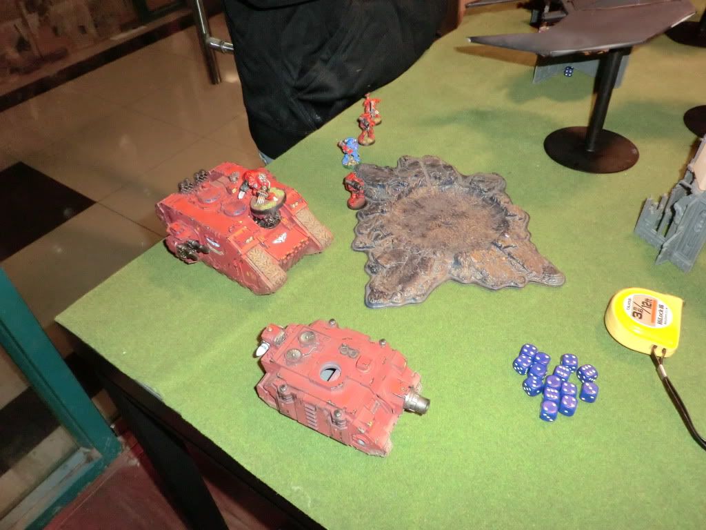 I have lined up as far back as possible. The models are pretty big and I have seen bad results in the past when deploying aggressively and having the intiative stolen. This way if he deploys aggressively and steals he might struggle with fast vindicators getting alpha strike shots on.