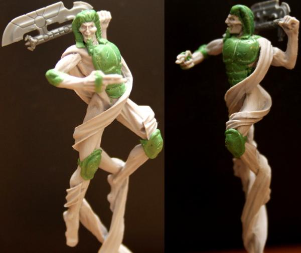 You're dead on there, as much as I love how he's shaping up he is still undeniably the deciever (minus the odd head spikes). When this layer of GS dries I will be fashioning him an egyptian false beard to remove the very painted features on his chin to differentiate the face a little more. It may take combining the strands (bandages?) that float around the deciever into one overly large cloak to change the body up but I;m not altogether thrilled with my ability to GS cloaks atm.