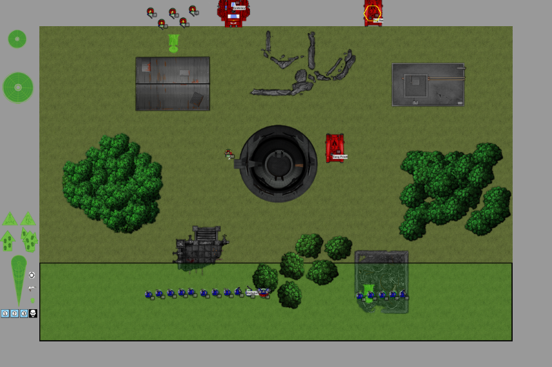 We rolled for initiative, and I won. I decided to go first, and we deployed as such