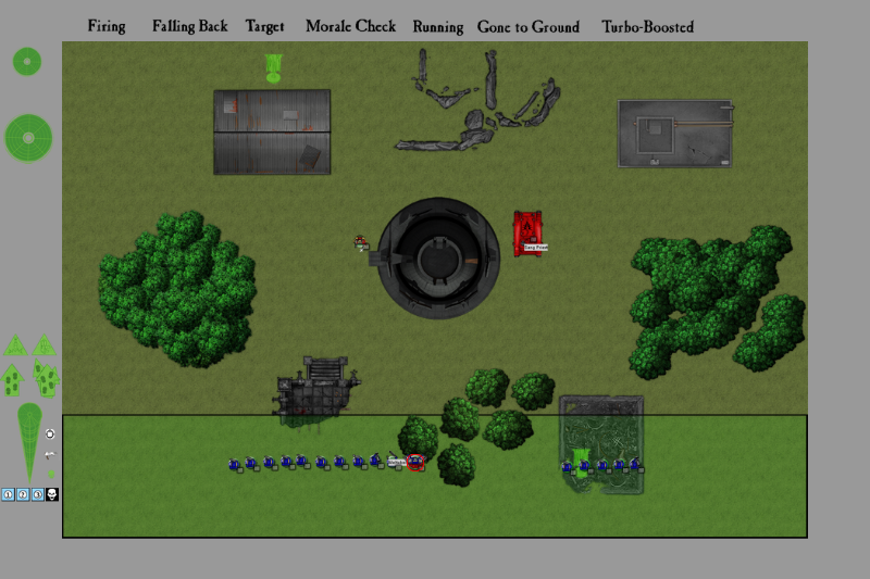 RICEDADDY So he needed his other vindicator in here, pretty badly. He successfully rolled for that reserve, and brought him in there. He took his remaining shaken razorback into the woods. There was no other movement he wished to perform, so onto the shooting!