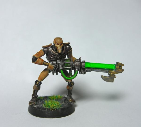That being said, I urge you not to go with this color scheme for your Necrons. It reminds me of an animated villain from an old cartoon show. I can't quite put my finger on it. Skeletor? No...hopefully it'll come to me. In any case, I don't think the ivory/bone with the metal is working. It winds up looking like he's a skeleton in a big metal turtleshell.