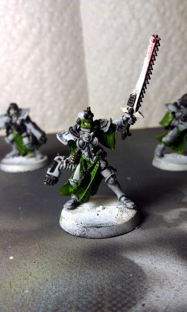 On a sisters painting note, I decided to reverse the scheme on the sisters, Green Armor, white robes, the white is too finicky for me to do fine details on the armor and it's driving me nuts, not to mention I like the look better