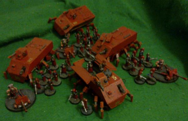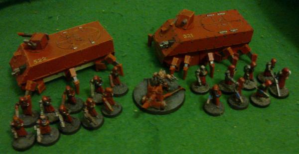 Those skitarii are pretty good, all I can really say is that the Chimeras should have some extra armour around the sides, above the legs. Just to bulk it out, really.