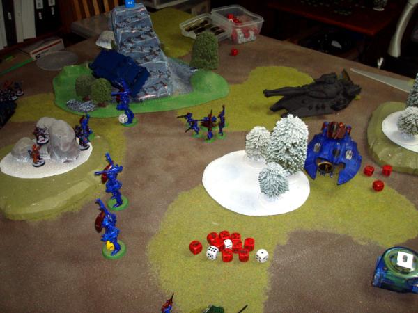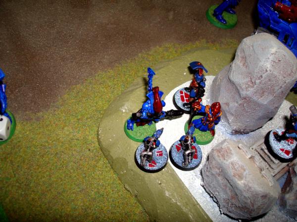 Recovering from the Arbites opening volley the Eldar spread out to do some shoosting of their own.