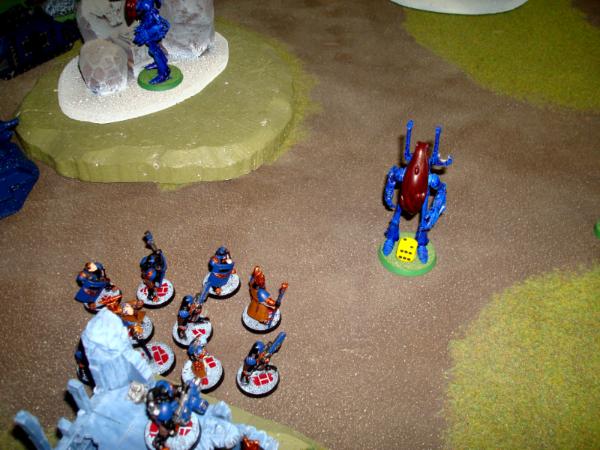 The other wraithlord assaults the dominions, he only hits once and kills one. Wraith blades are no help to the elder today. The dominions pass their