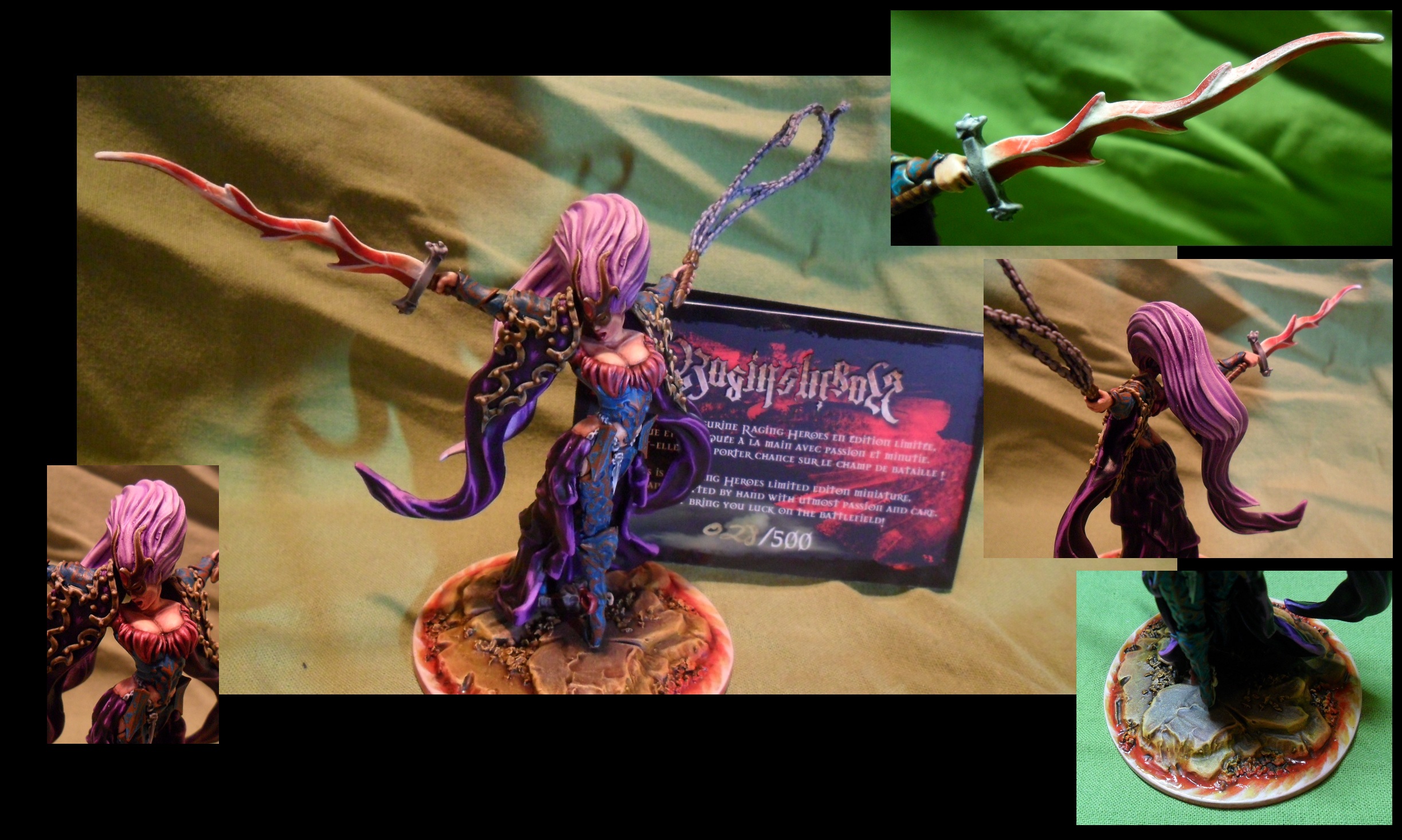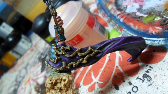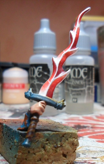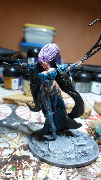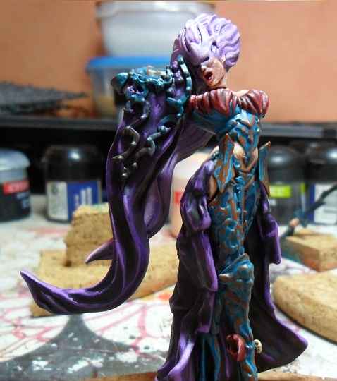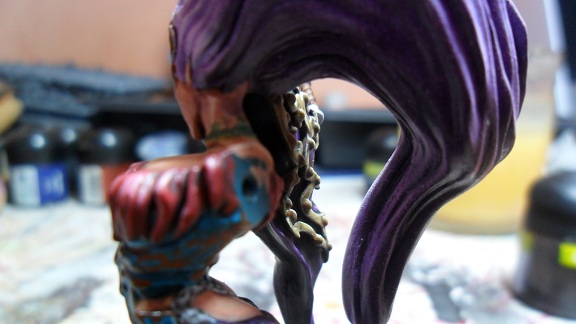 The head is don  and I have started on the metallic parts on the dress and weapons.