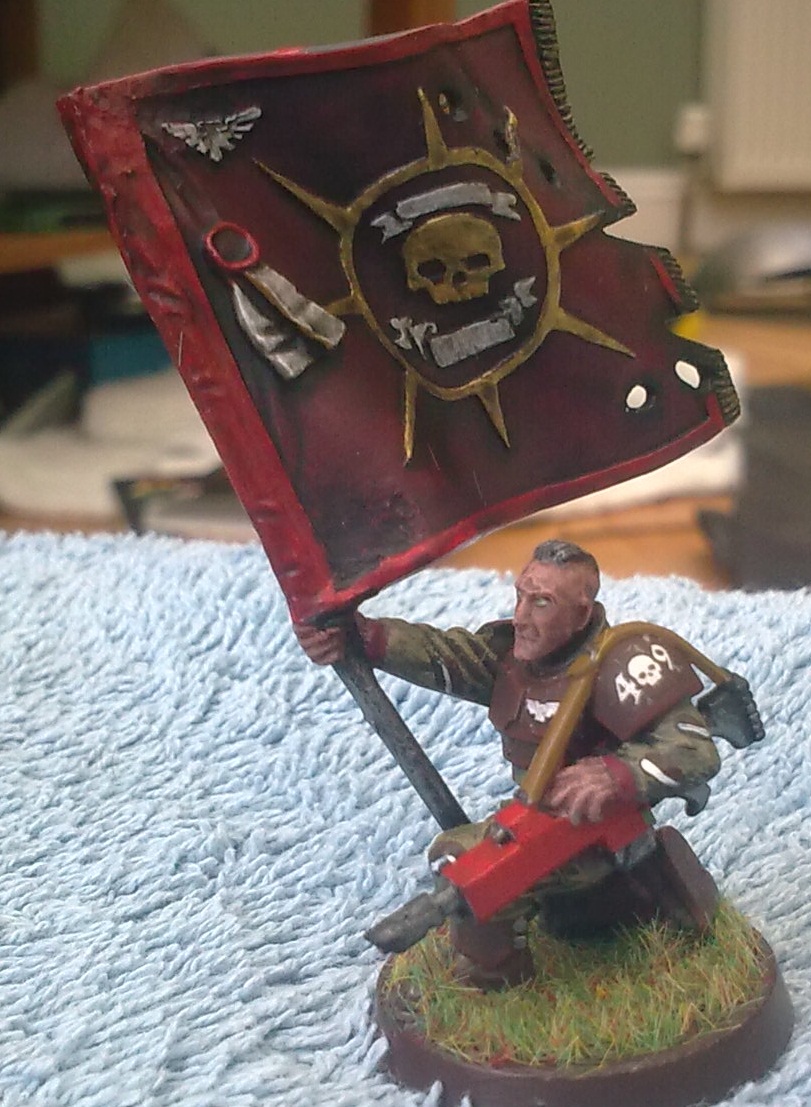I agree, the all grass bases look nice, and the commissar with the skull is terrific. I'm never a fan of cherry red lasguns but that's more of a personal sort of thing. The camo is simple, yet effective. Great start
