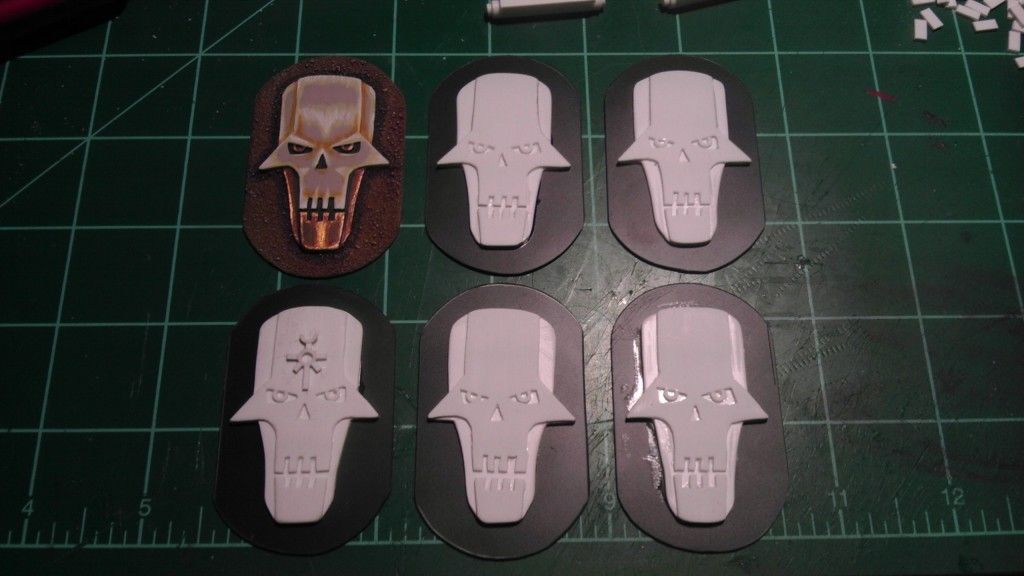 I was working to finish my wraiths today when I got bored with it and decided to try something fun. I wanted some reanimation protocol markers, messed around with a few ideas and this is what I came up with. It is really just a display army so I will only need a few of them, but if I do use it, it will be cool to have markers that fit with the scheme of my army. figured I would just put dice next to it to let me know how many rolls I need to make. for the ever-living markers I will add the necron symbol to the forehead so they can be told apart. overall I liked the way it came out and it was fun to do something different.