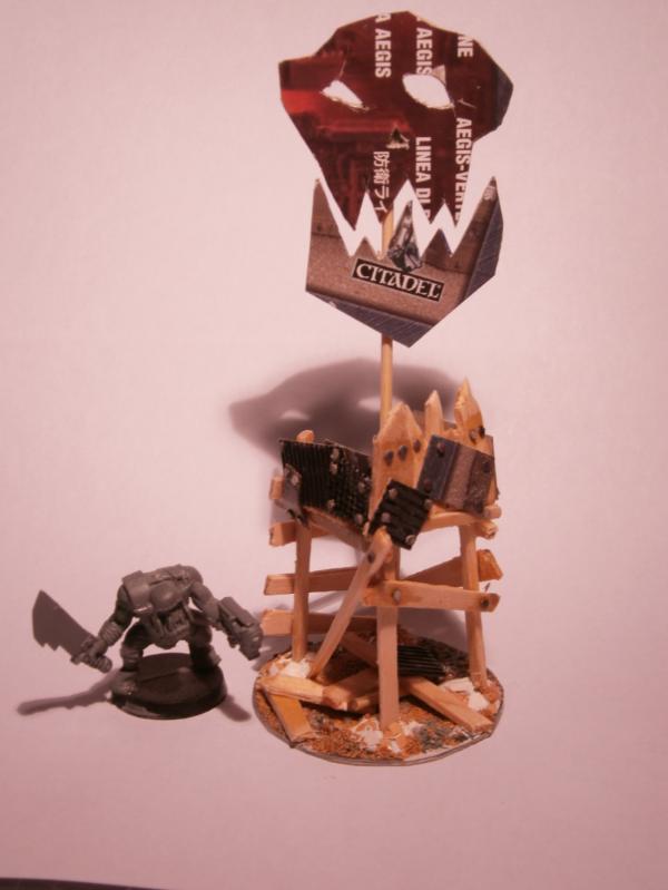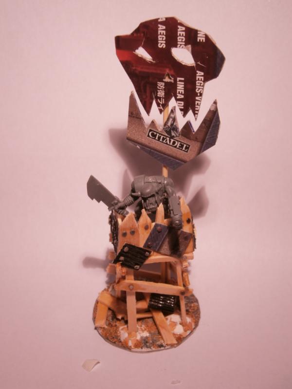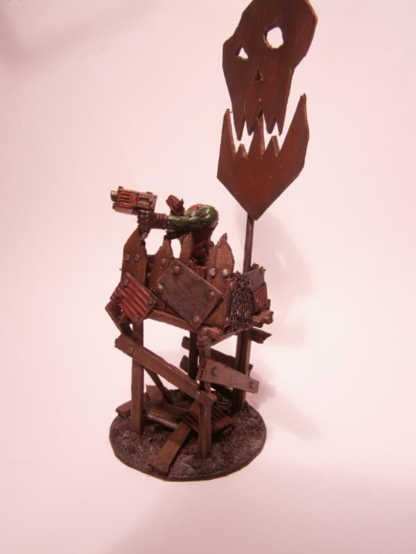 Hey Dakka, welcome to my new thread. This thread will showcase my Orky Terrain. I am aiming to make a whole Orky village which will consist of; - 3 Watch Towers ( 1 finished 2 not yet started) - 2 Fortified Towers ( not yet started) - 1 Water Tower ( not yet started) - 1 Fuel Tower ( not yet started) - 6 Barricades ( not yet started) - 3 Boyz Huts ( not yet started) - 1 PIMP Warbuss Hut ( not yet started) - 1 PIMPIN Mek Garage ( not yet started) - 1 DOW Style Power Generator ( not yet started) - 4 Junk Piles ( not yet started) I will possibly also make; - 1 Squig Pen ( not yet started) - " DA DROPS" Any guesses what that will mean? ( not yet started) - 1 Giant Waaagh Sign. ( not yet started) - 1 Landing Pad ( not yet started) - An Orky Fence around the whole compound ( not yet started) Along with this set I will make 4 funny Ork Objectives. Here are the Ideas I have; - 1 Giant Squiggoth Turd that has DA BOSSES FAVOURITE SHOOTA buried within its smelly depths. ( finished) - 1 "Da Spanna in Da Stone" every Mek's Wet Dream. ( not yet started) - 1 Mek Device that has a big red button that says "do not press". ( not yet started) - 1 Underground secret entrance with a sign above it that reads "nuffin ta see ere". (This Idea is not my own I have seen it done many times before). ( not yet started) - 1 Da Warbosses Diary. Possibly I will have a Space Marine or a sneaky Grot sitting down and reading it, laughing their heads off. ( not yet started) I already have sketches of all the pieces I want to make, but I will probably come up with more ideas and add them to the list. Here goes. My first piece. An Orky Watch Tower WIP pics When I finish everything I want to sell the whole set. Quick Question: How much would you guys and gals pay for a whole set like this? The usual C&C is appreciated! I am open to all suggestions and Ideas. Thanks for looking!