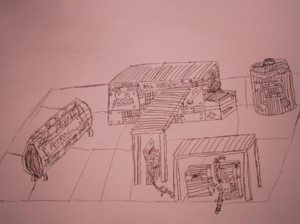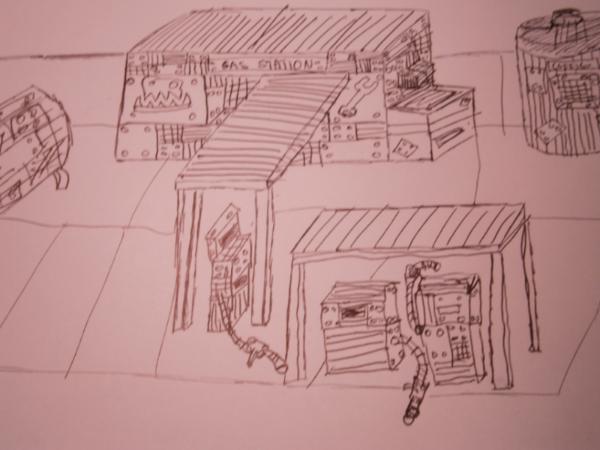 Great Ideas, I'll maybe work on it later, but for now I'm happy to leave it as is. Brotheralexos wrote:Giant Turd objective markers... Sir, I love you. Why thank you! Today I was skimming all of the tutorials and stuff on http://www.terragenesis.co.uk, and then I realised that they had a forum. After all the times I've been on there I can't believe I have only found it now. It's needles to say that I joined... I saw that they had competitions like this one... http://www.terragenesis.co.uk/forum/viewforum.php?f=45&lp=85484. I'm entering the one above... The theme is Transportation. So I decided that I'd make a Orky Petrol Station. Here are some rough planning sketches... The Petrol Station will also have a Coffee shop . This mini Coffee cup will serve as the basis of the Coffee shop. The whole thing will rest on a Concrete Slab. If I'm feeling up to it I will make detailed interiors of both the Gas Station Shop and the Coffee Shop. I'm looking forward to get started on this one...