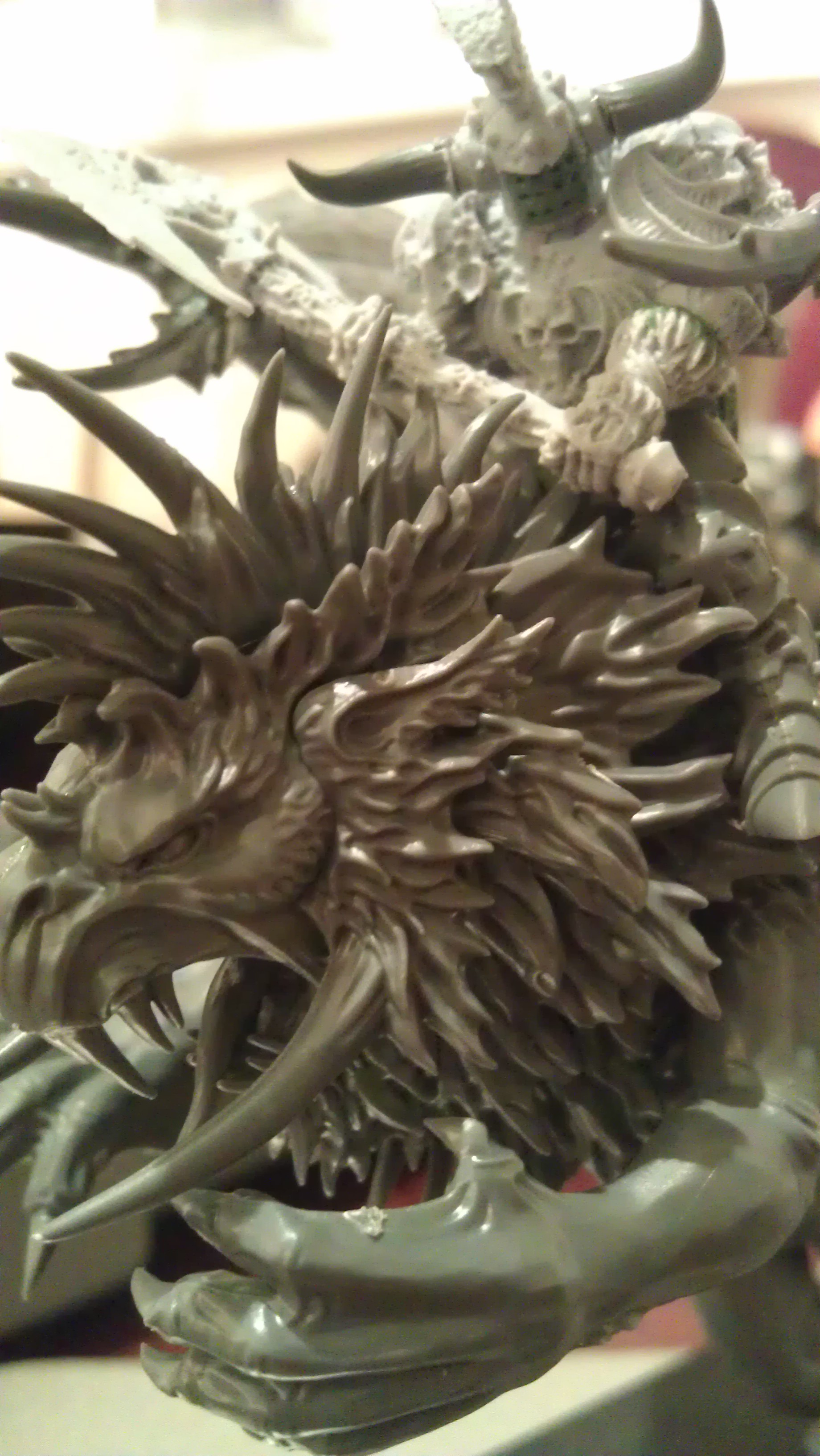 So after weeks of poring over the WoC army book I figured that a Chaos Lord on Manticore with the Axe of Khorne, Talisman of Preservation, and Mark of Nurgle, would kick some serious ass! So that's S7 WS8 I7 Lord with killing blow, a 4+ ward save, and -1 to hit on a flying monstrosity that also has killing blow at S5 that causes terror. I'm new to fantasy, but that sounds meaty as fc:uk.