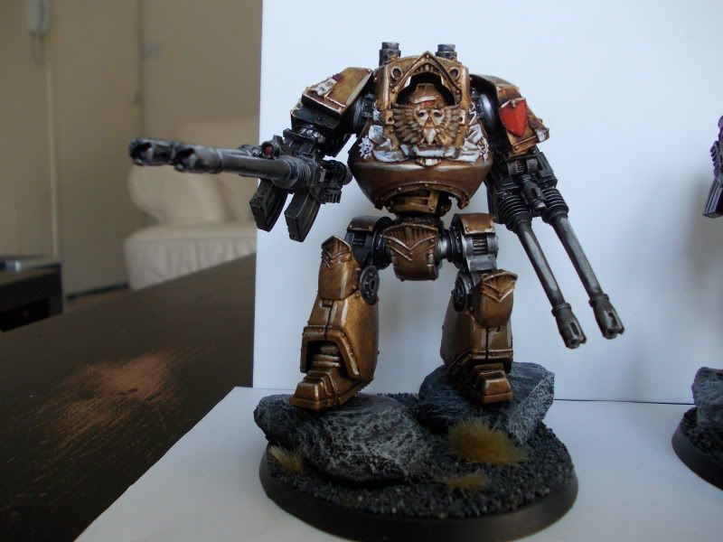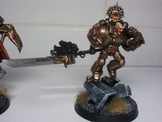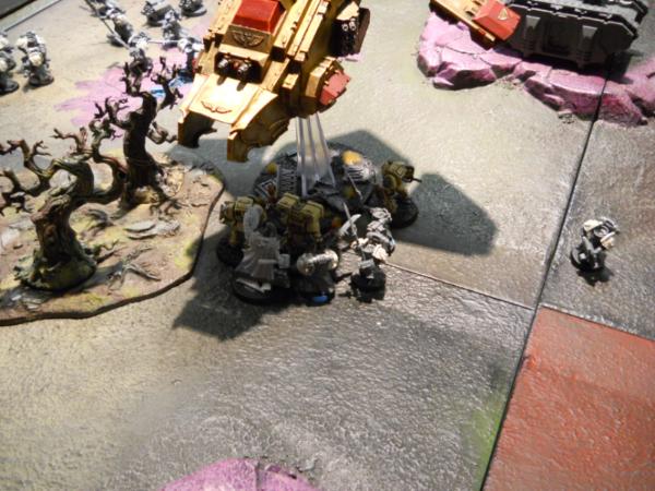 DW squad and kill two, then his hammer is with-in 2 inches of someone in base with Belial so he swings on him getting two wounds and I fail an invuln and he dies =(... But not before he kills two himself. The other termies wiff and I make my fearless saves.