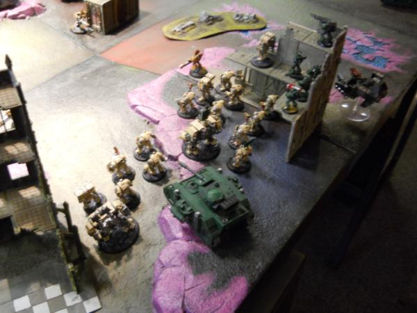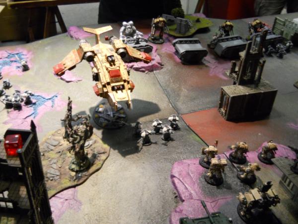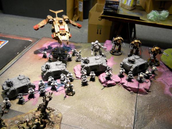 Ryan chose to keep his storm raven with Inquisitor and purifiers in reserve and deployed the rest of his forces like this
