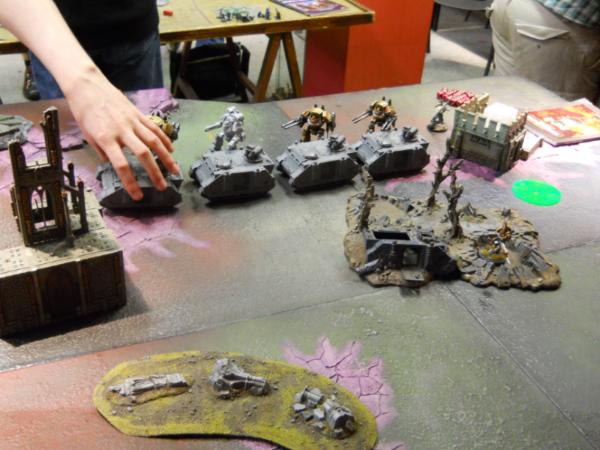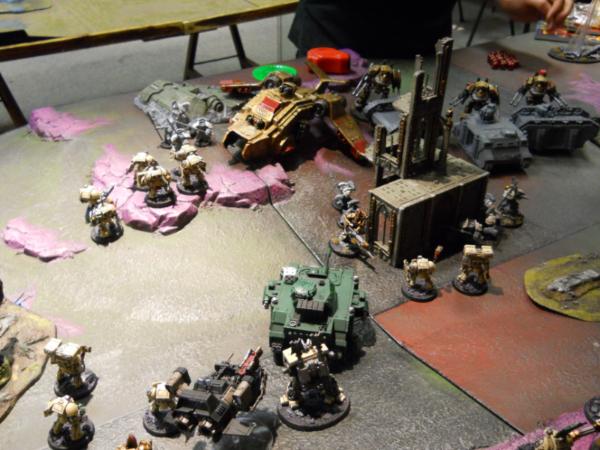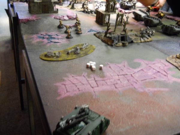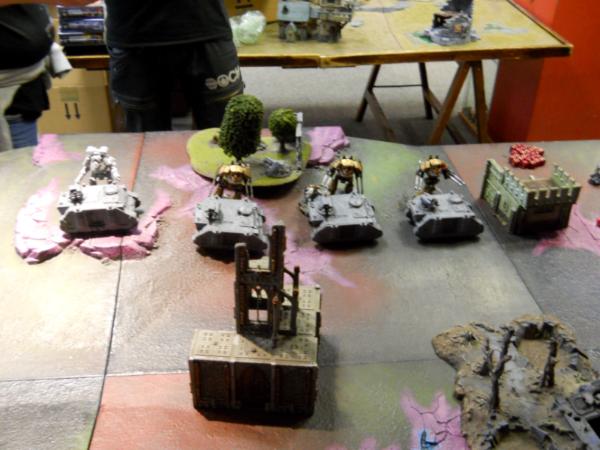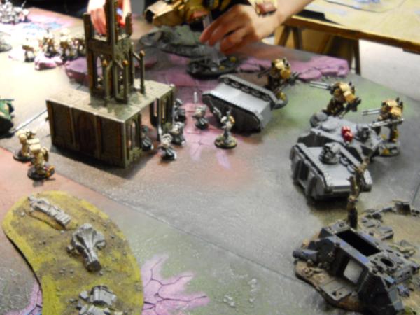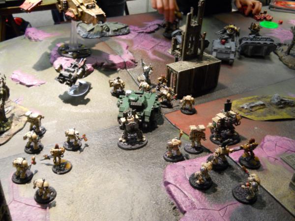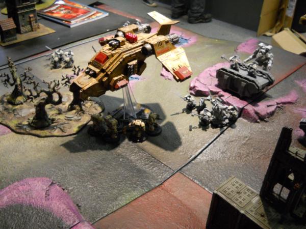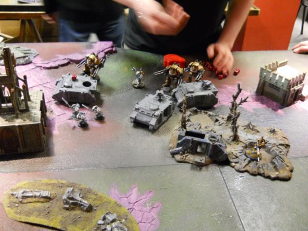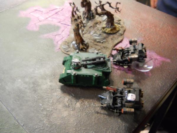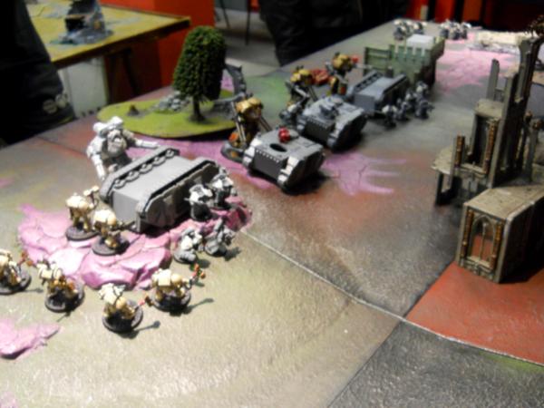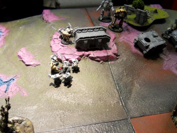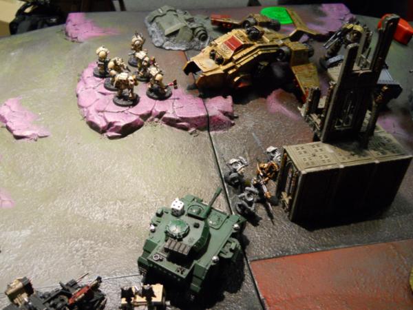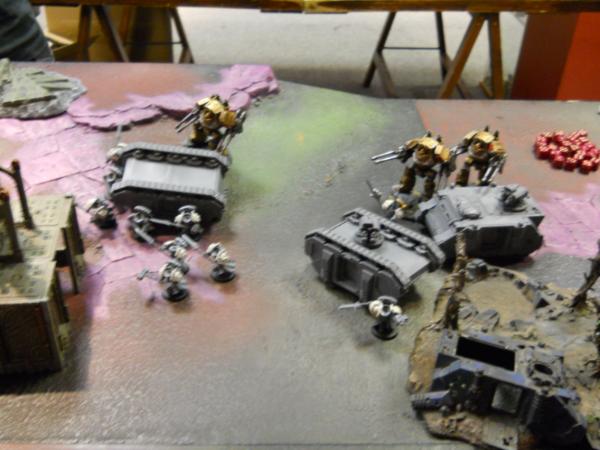 Devs and two left termi squads manage to wreck the far left razorback. And my last termi squad in the centre weapon destroys and immobilises the middle left razorback.
