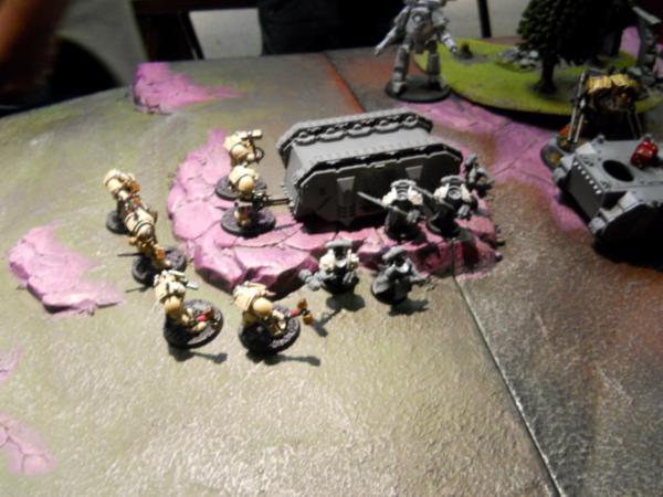 inq rolls a 2 for his psych out nades? Which means one of my termies tries to attack his own squad but fails. The purifiers then fail to kill a termie and one of my hammers squishes a purifer and then they lose another purifier to a fearless save.